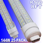 FAST DELIVERY - Ship from New Jersey or Los Angeles Warehouse via FedEx , 3-7 Days Delivered Your Door . SCIENTIFIC DESIGN - 8Ft LED Shop Lights Fixture is Made of 6500K Cold White SMD2835 LED Chip ,Plastic Clear Cover , Aluminum Bracket Housing ,and AC85-277V Constant Current Driver . It can work in -68F to 120F Temperature Conditions EASY INSTALLATION - The Integrated Tube Fixture Can be Install on Wall or Ceiling ,Easily Replace Traditional Fluorescent Tube Bulb . Plug and Play , Free Accessories (Power Cords, Connector , Extension Cords , Clip and Screw ) Come with Tube Lights Together WIDE APPLICATION - Linkable 8Ft Bulbs Widely Used in Garage Ceiling , Barbershop , Schools, Hospitals Basement , Factory Warehouses , Supermarkets Cooler Door , Offices, Shops,Hotels, etc 8 FOOT R17d HO Base Led Shop Light 8Ft Led Tube Light 144W 25Pcs T8 Rotatable 【Rotate Cap & Swivel End】 Easy Adjust rotated Lighting Direction within 180 degree after Installation 【No RF & FM Interference】LED Driver have passed Electromagnetic Magnetic Compatibility EMC tests,No cause EMI ,No longer subject to any RF & FM jamming. Never interfering with the signal of your garage roller shutter door,No make noise when you listen radio 【Easy to Install】Just simply bypass the ballast and connection AC85-277V AC power . Not compatible with single-ended powered sockets 【Wide Application】 - 8Ft 144W V Shaped R17D HO LED Bulb fitted to replace traditional F96T12 T8 T10 T12 fluorescent bulbs. Widely used in Garage,supermarkets, offices , convenience stores .