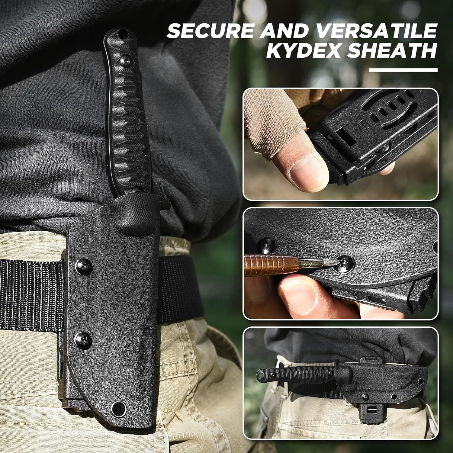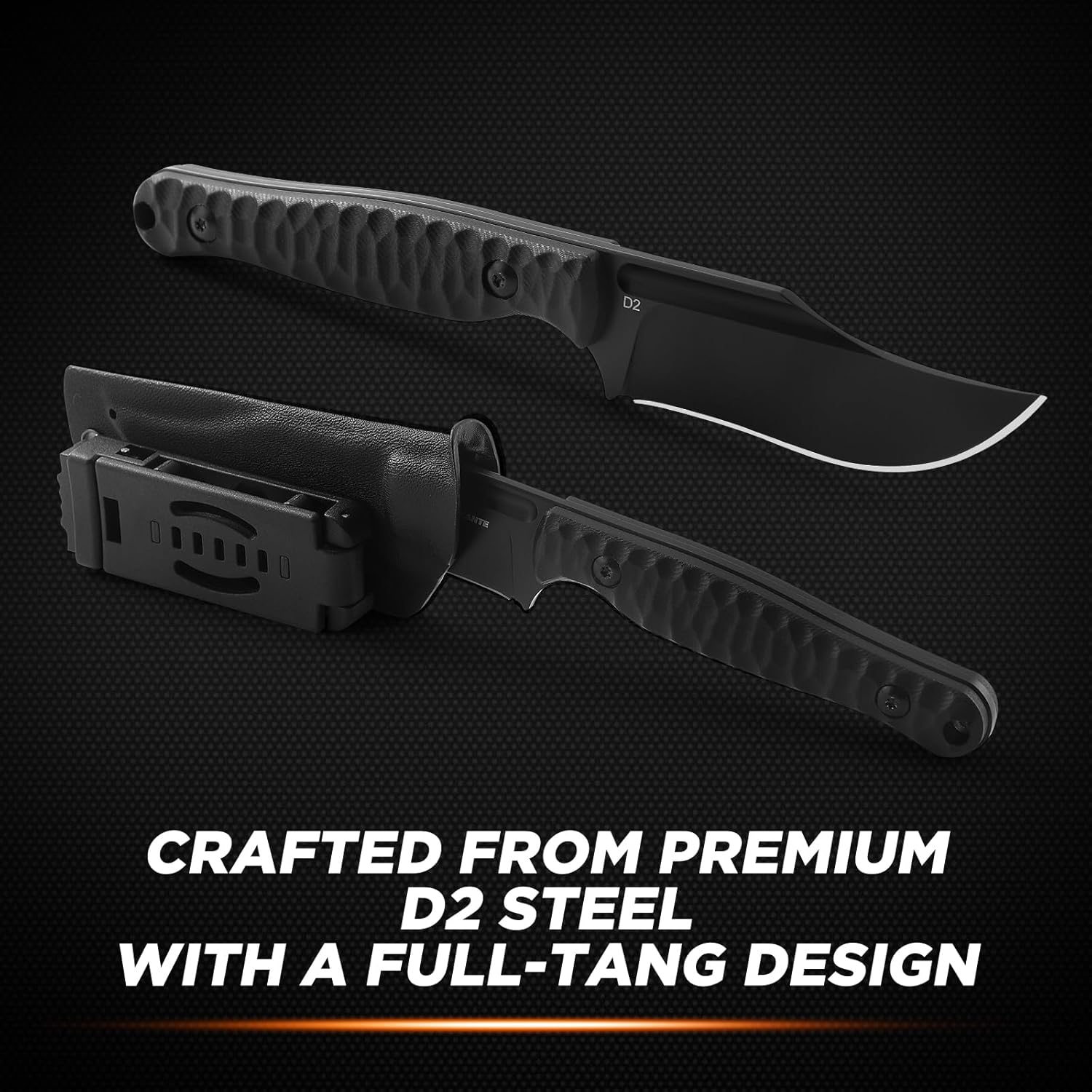 D2 Steel Blade: Crafted from high-quality D2 steel, the blade of the SPITZKANTE Fixed Blade Knife provides corrosion resistance, and durability. Designed for outdoor and tactical tasks, this blade performs reliably, whether in wilderness settings or everyday use. Full Tang Construction: This horizontal knife’s full tang design offers strength and stability, reducing the risk of breakage during tasks. Paired with a G10 handle, the full tang construction ensures a balanced, solid feel in the hand, making it a dependable tool for any challenging environment. Ergonomic G10 Handle with Non-Slip Grip: Choose a handle designed for comfort and safety. The textured ergonomic handle provides a non-slip grip that remains stable in wet or rough conditions, giving users greater control and confidence. Kydex Sheath with Horizontal Carry: The included Kydex sheath is designed for secure horizontal carry, keeping your edc fixed blade knife safe when not in use. Its durable construction protects the blade while allowing access, making it ideal for both tactical use and outdoor exploration. Versatile Outdoor and Tactical Tool: Ideal for survivalists, campers, hunters, and EDC enthusiasts, the SPITZKANTE tactical fixed blade knife with sheath is suited to a variety of tasks. From preparing firewood, this knife’s versatility and reliability make it a must-have for anyone who values gear. Product Description SPITZKANTE Knives Add to Cart Add to Cart Add to Cart Add to Cart Add to Cart Customer Reviews 4.5 out of 5 stars 27 — 4.2 out of 5 stars 4 4.5 out of 5 stars 2 4.7 out of 5 stars 4 3.7 out of 5 stars 14 4.1 out of 5 stars 45 Price $33.99 $ 33 . 99 — $35.99 $ 35 . 99 $22.99 $ 22 . 99 — $19.99 $ 19 . 99 $12.99 $ 12 . 99 Blade Material D2 Steel D2 Steel D2 Steel 5Cr14MoV Stainless Steel D2 Steel D2 Steel 5Cr14MoV Stainless Steel Whole Length 20.3 cm/ 7.99" 20.3 cm / 7.99" 17.6 cm / 6.92" 16.5 cm / 6.49" 21.2 cm / 8.35" 20.1 cm / 7.91" 14 cm / 5.51" Blade Length 8.9 cm / 3.5“ 8.9 cm/ 3.5“ 8.7 cm / 3.42" 6.2 cm / 2.44" 10.6 cm / 4.17" 9.4 cm/ 3.7" 7.1 cm/ 2.79" Handle Length 11.3 cm / 4.44" 11.3 cm/ 4.44" 10.5 cm /4.13" 9.4 cm / 3.7" 10.5 cm / 4.13" 11.3 cm/ 4.45" 7.4 cm/ 2.91" FULL TANG ✔ ✔ ✔ ✔ ✔ ✘ ✔