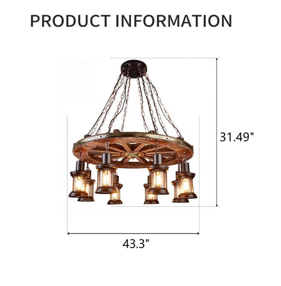 8 Heads Chandelier Industrial Ceiling Lamp Rustic Wood Hanging Pendant Light Specification: Style: Vintage ship Product Size: 43" L x 31.5" W Lantern Size: 8.3"L x 4.7"W Chain Size: 24 inches(total of 8 chain) Material: Metal and Wooden Lamp Type: E26 Max 8* 40W, Incandescent, LED, CFL and Halogen Bulbs are workable (Bulb Not Include) Rated Voltage: 110V Power Source: AC, Hardwired Weight: 26.5lb Features: The unique rudder shape and rustic wood grain color make this chandelier stand out as a nautical-inspired statement piece in any room. Made from high-quality wood, this hanging light features eight E26 lamp heads (light sources not included) that are sure to illuminate your room with a warm and inviting glow. Whether you're looking to add a touch of vintage charm to your home, office, or restaurant, this Industrial Wooden Hanging Light is the perfect choice. So why wait? Order yours today and experience the beauty and functionality of this stunning light fixture for yourself! Assembly: This light will need basic assembly skill, professional would be highly recommend. Warranty: If you received damaged or unqualified product, please kindly contact our customer service, we will handle your problems immediately! We're dedicating your 100% satisfaction! Payment Delivery details Terms of sales About us Contact us Payment You could make payment via: Delivery details Packages will ship via by UPS or USPS within our handling time,once the package is shipped out ,normally shipping takes about 3-10 working days,but due to different cities and states,shipping time will be different. Terms of sales If you any problem about shipping information, or the item you got : Arrived damaged; Wrong item sent; Missing parts or pieces; Doesn't work or defective; Doesn't match description or photos. Pls click "Contact Seller" and send us message firstly. Then we could have a check and will take responsibility to resolve the problem with you in good communication. About us Our company specializing in selling all kinds of light fixtures,such as ceiling fans,chandeliers,crystal lights,retro lamps,pendant light,etc. If there's any light fixture you are interested,pls feel free to contact us for more details. Contact us Normally your message will be replied in 1 business day,If after 24 hours you do not receive our reply,please kindly re-send us the message,because sometimes ebay message system will have technical problem,so your message can't send to us successfully.