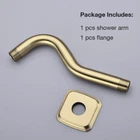 Shower Arm Material: Stainless Steel Color: Brushed Gold Length: 8 inches Connector: 1/2" NPT to wall, 1/2" IPS to shower head Flange size: 2.36" x 2.36" Packing Include: 1 x Shower Arm 1 x Flange 16-inch shower arm please seach B07X445P2K 12-inch high rise please seach B07MFB1NNS 8 Inch Brushed Gold Shower Head pls seach B086YNWM73 Brushed Gold finished 8-inches angle shower arm of high-quality stainless steel with flange Fits all standard shower plumbing in the U.S. (1/2"-14 NPT male thread connects to wall, G 1/2" male thread connects to shower head) Corrosion resistant and rust-proof, 2.4" x 2.4" square flange with rubber ring will not scratch shower pipe arm body Designed to install quickly with no hassle. No plumbers or tools required 70° down towards floor. 16-inch brushed gold shower arm please seach B07X445P2K