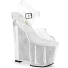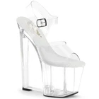 This is a listing for a new pair of 8" Clear Wedge Platform Heels . These heels are made by Pleaser and the style name is Amaze-808 . There is a 3.5" front platform and a thick insole that gives your feet some added comfort. Available colors : Clear, Clear/Silver Available sizes : US woman's sizes 6, 7, 8, 9, 10, 11 Use the drop down menus above to select your color and size. If you need help converting your international shoe size, please refer to the manufacturer's shoe size conversion chart below. ** Easy 30 day Returns Manufacturer's International Shoe Size Conversion Chart The shoe size conversion chart serves as a guide to help you determine the sizing equivalent of our products in different parts of the world. Please note that the actual sizing may differ slightly from the chart as the size conversions listed are APPROXIMATE - there is no universally accepted international conversion for shoe sizing; it may also vary slightly from collection to collection among our different brands. If you need help selecting the best conversion, please message me before ordering.