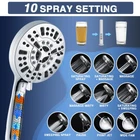 ✔【Shower Head Combo】- 8 inch square rainfall shower head with filtered handheld shower head, 59 inch shower hose, and a 3-way diverter, which allows you to choose different bath experiences at any time. Plus a shower filter for rain shower head, dual shower filters purify your water & reduces harmful Chlorine. ✔【Design with Dual Shower Filter】- Our water softener showerheads combo includes a 15 stage shower filter for hard water and the handheld shower head is equipped with multi-layer filter, which helps to remove chlorine, heavy metals (lead, mercury, nickel, chromium) and other harmful substance, improves the condition of your skin and hair in both hot and cold water. ✔【Power Wash Hand Held Shower】- Our high pressure handheld shower head with filters for hard water is made of high quality ABS, equipped with multi-layer filter cartridge & 10 shower modes: 8 different spray modes to suit all your family needs + 2 power wash cleaning modes to clean your bathroom corner more effectively. Shower head with 59” stainless steel shower hose is ideal for baby bath, pet shower and cleaning applications. ✔【Premium Rain Shower Head】- 8 inch square rain shower head, waterfall full body coverage. The high-pressure shower heads rainfall are made of SUS 304 stainless steel with chrome finish for the highest rust resistance and longevity. The silicone nozzles can bring you a hotel-style shower experience, and has a self-cleaning function, which means it will not be blocked. ✔【EASY TO INSTALL】- Shower heads with handheld spray combo comes with installation tools. Easy to install, no need to a plumber, just 3 manually tightened connections can be installed in a few minutes. Rain showerheads & handheld showers can be used with a shower head/rainfall shower head alone, or with showers at the same time. The flow intensity may be slightly affected by your local water pressure.