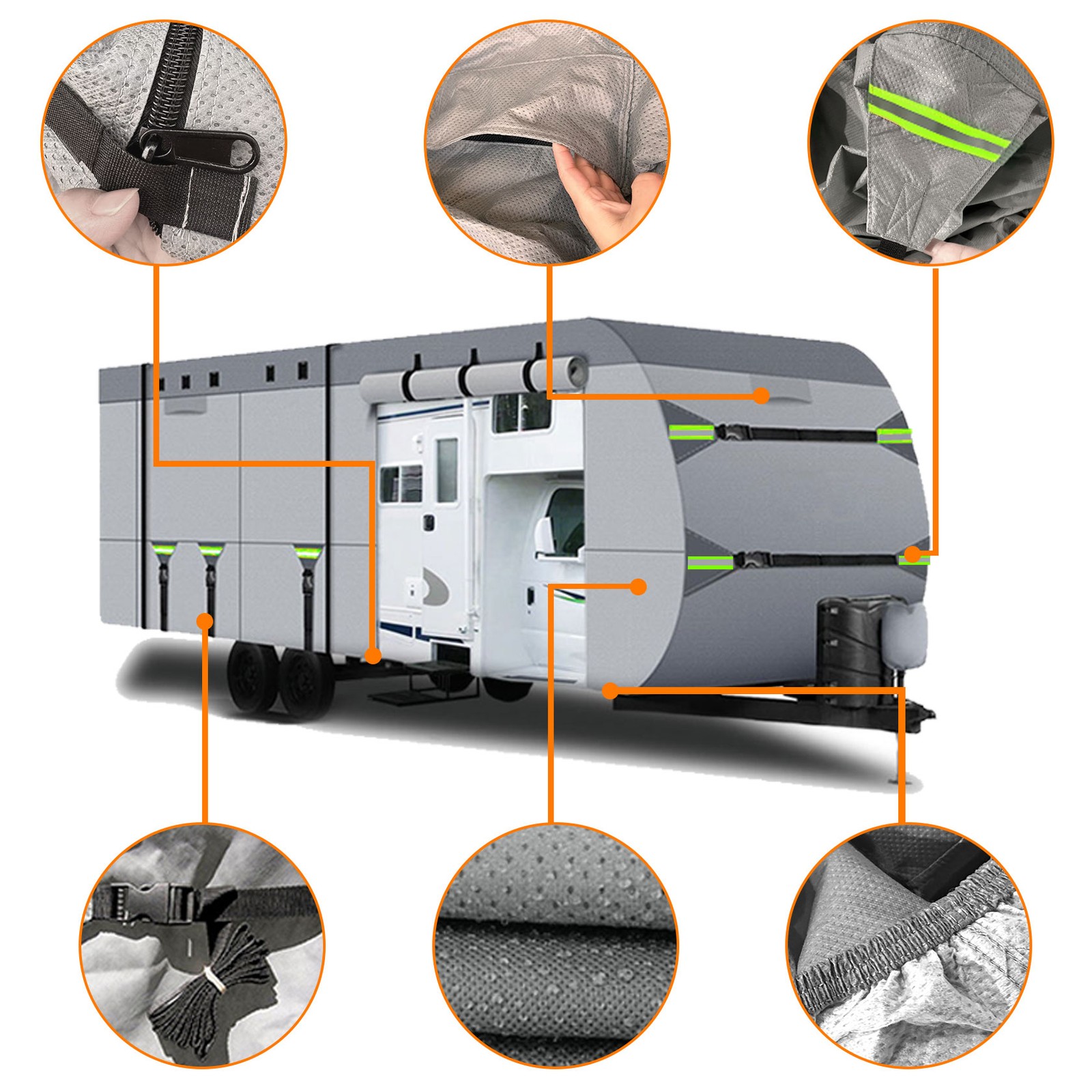 Store Categories Store Categories Other 8 Layers Top Camper Cover Windproof Travel Trailer RV Cover Fit 20' to 22' Product Description 【Material】Upgraded Rv cover& Trailer covers, RV cover fabric to extra thick 8-ply non-woven fabric mixed with waterproof membrane, protect against rain, snow and scratches. Reduces premature aging of RV prolonging service life. 【Waterproof&Windproof】8 layers of fabric built-in waterproof film,fabric is thicker and more durable than others on the market, strong waterproof performance.Our trailer cover provides super windproof, with elastic hem,9 extra long straps to keep the RV cover firmly fixed on the camper without being blown away. 【 Air Permeability】There are 6 air vents placed on the RV cover can effectively reduce the wind pressure and discharge the internal moisture.The breathable material can maximize the speed up water evaporation ,keep the inside of the cover clean to keep the RV dry all the time. . 【Features】The interior is soft enough not to scratch the car paint, good air permeability,2 reflective strips in front and rear for safety avoid collision during night.Note: Make sure that the size matches your needs before purchasing, so you can have a better shopping experience. 【PACKING LIST】20-22 ft Travel Trailer Cover *1, Front and End buckle straps *4, Bottom buckle straps *3, 12 -meter body bundle webbing straps *2, Tire covers *4, Jack cover*1, Adhesive repair patche *1, Storage Bag*1. Contact Us Shipping Policy Returns Policy Contact Us Please feel free to contact us if you have an issue with the part you receive. Please do not open a case directly through eBay as it will hurt the seller's good standing. We ask you to please give us the opportunity to resolve any issue you might have directly with you first. We usually reply within 24 hours, holiday and weekends might take slightly longer. Thanks for your patience, understanding and cooperatio We strike to make the buying and selling experience pleasant for both. Thank you for your time and cooperation. Shipping Policy The item will be shipped within 24 hours on payment received except the holidays.(except weekends & official holidays). You can log on to eBay to check your logistics tracking number.Please confirm address before purchase, and cannot change address once purchased. If you need to receive the item quickly, please contact us, you can pay the postage to choose other logistics. Returns Policy Please contact us first when return, exchange and refund is required. Any direct return of purchased items will not be processed. Item must be returned in new condition, as received with all accompanied accessories and literature, including the factory carton. Shipping, handling is not refundable unless item is returned because of defect. If the product is defective or damage upon arrival,please contact us immediately,we will provide the solve the problem. Returns accepted within 30 days of delivery date and item must be in original new condition. Copyright © 2023 Dianxiaomi