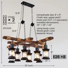 8 Lights Farmhouse Wooden Chandelier Ceiling Lighting Industrial Pendant Lamps About this item 【Design】: The tic-tac-toe wood chandelier combines the natural wood texture with the exquisite iron art, emitting a unique and charming charm. Every time it opens its light, it seems to light up the hopes and dreams of life 【Material】: Contemporary chandeliers are known for their unique shapes and design styles. Each piece of wood has been carefully selected to display a natural wood grain color, it has 8 exquisite wrought iron glass lampshades, each shining like a star 【Applicable Space】: Whether in the living dining room or bedroom, the farmhouse chandelier can be the focal point. It perfectly combines modern and classical elements to create a unique decorative effect 【Bulbs】:Retro hanging pendant lighting is suitable for E26 bulbs(bulbs not include), you can choose 8 x E26 bulbs and can be easily replaced.110V,40W 【Size】: Product size: L39” x W39” x H43”, Lantern size: D5" x H8". Hanging chain length: 12.5”, adjustable chain length to match different ceiling heights 【Perfect Service】Customer satisfaction is our goal, please contact us with any questions, we solve it for you within 24 hours。 Product Description Industrial Chandelier Black Metal Vintage Adjustable Hanging Pendant Light Farmhouse Industrial Wood Pendant Light Chandelier Hanging Ceiling Fixture Payment Delivery details Return Contact us About us Payment 1.We accept PayPal,G Pay Credit Card,Visa ,etc. payment. 2. Please make payment within 4 days after placing an order, or eBay will automatically open an unpaid case on the fourth day. 3. You can contact us for sure if you want to cancel the order to avoid the unpaid case. Delivery details Your goods will be shipped within our handling time after your full payment. Pls note that we don't ship to Alaska, Hawaii and Puerto Rico.APO/FPO’s address. Return We accept return within 30 days, but we are not responsible for human damage.The return shipping cost is the buyer's responsibilities and try to keep it in your original package. Contact us If you have any questions please contact us through "Ask seller a question" link. We will respond within 2 business day or less. About us We are committed to providing you with a comfortable home and by functional and beautiful ceiling fans and lighting fixtures. As a professional modern lighiting fixture supplier, our team has more than 15 years Ceiling fan and lighting production experience. We are not only committed to produce high-tech, stylish, safe and high quality LED products, but also provide our professional and efficient after-sales service, making your lighting experience more pleasant and comfortable.