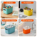 Product Description: Colors: Blue, Orange, Yellow, Green Material: Plastic Dimensions: 9.96 inches long, 6.89 inches wide, 5.9 inches high Product Listings: 8 colorful storage bins with lids 【Package Includes】You will receive 8 colorful storage bins with lids including 2 boxes of each of the four colors: blue, orange, yellow, and green. These colored storage bins come with lids to effectively prevent dust and keep stored items clean. 【Dimensions】These colored storage bins with lids measure 9.96 x 6.89 x 5.9 inches, offering just the right capacity. They can easily accommodate office supplies like folders and sticky notes on your desk, small books and magazines on your bookshelf, underwear and socks in your closet, and children's toys like building blocks and dolls. 【High-Quality Materials】Our cute storage bins are made of high-quality, durable plastic that resists deformation and breakage, making them durable enough to withstand frequent use and stacking. They are also water-resistant, making them a durable storage option. 【Easy to Handle】These storage bins for classroom feature handles on both sides that fit snugly in your hand for a comfortable and secure grip. The lid fits snugly to the box, allowing for smooth opening and closing, ensuring effortless access. 【Widely Applicable】Our storage bin with lid is versatile and perfect for shelves, drawers, or cabinets. It can be used to store nail polish, makeup, and hair ties; soap, toothpaste, and toothbrushes; spices and small utensils; pencils, scissors, and paper clips; and even in wardrobe drawers, it can be used to organize socks, underwear, and other intimate items, creating a tidier and more organized space at home and in the office.