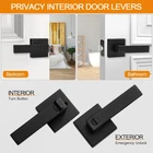 MODERN DESIGN: Simplistic line design looks bright and tasteful, giving you the sense of maturity,Suitable for a variety of decoration styles. Matte black finish is gentle and decent. It also gives you a smooth touch while enhancing the beauty of your room PREMIUM QUALITY: Heavy-duty door handle is made of premium quality zinc alloy and brass parts to guarantee rust-free in a high humidity environment. The door lever has a thick and smooth black color powder coating for long-lasting product life PRIVACY FUNCTION: The privacy door levers can be locked by twisting the button inside and opened outside in case of emergency with a flat-tipped tool such as a screwdriver or coin, ideal for use with bedrooms, bathrooms or offices, etc EASY INSTALLATION: All door handles are reversible and can be installed left-handed or right-handed. Privacy door handles come with all accessories and included installation instructions to help you complete the simple installation of the door handle lock in less time. Each of door handle is packaged separately to avoid scratches caused by collisions during transit ADJUSTABLE LATCH: Black door knob have adjustable universal latch - 2-3/8"(60mm) or 2-3/4"(70mm). Fits door thicknesses of 1.38"(35mm) to 1.78"(45mm). Dimensions: Lever Length: 4.6" (116mm), Rosette Diameter: 2.4" (61mm). Note : The square plate of the latch is unremovable Product Description Sopoby Keyless Square Privacy Interior Door Levers Heavy-duty door handle is made of premium quality zinc alloy and brass parts to rust-free in a high humidity environment. Keyless interior door handles are reversible and can be installed left-handed or right-handed. The privacy door levers can be locked by twisting the button inside and opened outside with a flat-tipped tool such as a screwdriver or coin. Matte black door handles can be used on most of the room doors inside the home, such as kitchen, living room, bedroom, bathroom, etc. Each Pack Include: 1 x Outside Lever 1 x Inside Lever 1 x Adjustable Latch 1 x Strike Plate 1 x Strike Box 2 x Long Screws 4 x Short Screws
