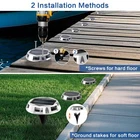Aluminum Alloy Solar Driveway Lights 9 Colors & 3 Flashing Modes IP67 Marine Dock Lights Solar Powered Waterproof RGB Solar Deck Step Light for Outside Ideal for outdoors, driveways, decks, piers, lawns, steps, paths, walkways, garages, gardens, etc. to add a sense of security and beauty FEATURES: 1.9 Colors options & 3 Flashing Modes 2.Solar powered and energy saving. 3. Waterproof rating IP67, hardy heat-resistant strong. 4. Automatically turns on at dusk and off at dawn. 5. Made of Monocrystalline silicon which means high charging efficiency. 6. Aluminum alloy shell can withstand rolling of vehicles. 7. Increase the switch button, make the lights storage life can reach more than 2years. SPECIFICATION Solar panel:5V/100MA mono- -crystalline Storage components:5OOMAH high temperature Nl-MH battery LED Qty:6 pcs high brightness LED Size:2.4*11.5CM Light intensity:800-1000Lux Visible distance:>500 meters Life span:3-5 years Working temperature:-20C~+70℃ Protect level:lP67 Material:Anti-UV, PC+aluminum Net weight per piece:260g " 【12 Lighting Modes - Strobe/RGB/Fix-color】Imagine your home’s driveway into a vibrant, rainbow-like road? The upgraded solar driveway lights featuring 3 dynamic light modes and 9 fixed color modes. It can be used as a warning step lights, LED driveway markers to prevent accidents, boat dock lights for night, and atmosphere pathway lights to add a touch of elegance that will make your neighbors green with envy. 【Pressure Resistant & IP67 Waterproof】The solar driveway lights are made of sealed anti-rust aluminum alloy, which can bear large trucks or ships under 10 tons. these dock lights are IP67 Waterproof hardy heat-resistant strong withstand any weather conditions, ensuring you have reliable lighting for years to come, even under the pressure of trucks or boats. 【2 Installation Methods】These marine dock lights can be quickly and easily installed using screws or ground stakes. It can be directly installed anywhere that can receive sunlight. Such as deck, dock, driveway, or lawn. (Screws and ground stakes are included in the package) 【Solar Powered and Energy Saving】Automatically turns on at dusk and off for solar charge at dawn! Powered by high-efficiency solar panel and offer up to 48 hours of continuous lighting after fully charge, ideal for extended outdoor use. *This may be shortened when the sunlight weakens in winter, and it will recover in summer. 【Widely Used Outdoor Solar Lights】High-quality LED lamp beads provide bright light, and 500 meter visible distance. The solar deck lights are widely used for driveways, decks, piers, lawns, steps, paths, walkways, garages, gardens, etc. to add a sense of security and beauty. Note: Please make sure to turn on the power switch for the first time before use.