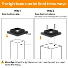 The Solar Post Cap Lights are introduced with many features that can help much in your garden or patio decor!!! Let's have a try and enjoy it. ※※※What VALUE we could bring for you: ※※※ 🌟 Advanced LED chip technology: Excellent brightness efficiency, 180°C beam Angle for the best lighting atmosphere and good color reproduction. 🌞 Energy saving and environmental protection: 100000H long life of Post Lights, Solar-powered, no charging required, which will save you money on your electricity bill. ☔ Waterproof: IP65 waterproof Patio lights can withstand high temperature, rain, moisture and wind or other bad weather. You don't have to worry about using it outdoor. 🌟 Easy to install: Install according to the instructions, and fix the base on the wooden pile with the attached screws. Fence post lights solar powered automatically turn on at night and off at daytime. Don't need someone to turn it on and off. 🌟 DETAILS: Input Voltage: 2V Input Current:200MA Output Voltage:3.3V Output Current:50MA Power: 0.5W Luminous Flux: 15 LM LED Quantity:1 Beam Angle:180 Degree Lifespan:100000 Hours Color Temperature:2800K Premium diamond light effect: Our 8-pack high brightness black solar post cap lights can transform your outdoor area with a glow and bring a touch of sophistication to your outdoor space. The lens is really pretty! It sparkles in the sunlight and gives off a diffuse glow at night. Easy on the eyes, too. Enjoy the warm white LED illumination, and special interior materials make the light as beautiful as small shining diamonds, perfect for adding a touch of charm to your fence, deck, garden and yard, driveway More durable & sustainable: The frosting will provide added longevity to the solar post lights, as transparent ABS tends to degrade under UV. The solar fence post lights can light for up to 8–12+ hours after charging for 6-8 hours under direct sunlight, much longer than other outdoor solar lights. It benefits from our upgraded solar panel with a larger surface area and higher conversion efficiency. No electricity is required Suitable for various sizes: Our solar post cap lights are designed to fit a different range of bases, and they are compatible with standard 4x4, 4.5x4.5, 6x6 wooden posts and 3.5x3.5, 4x4, 5.5x5.5 vinyl posts. The post lights are powered by solar energy without wiring. Just use the included mounting screws to effortlessly mount the solar post lights on your fence posts. Warm Note: The easiest way to install is to fix the base from above regardless of the post size. See installation pictures 5 and 6 for details Excellent ip65 waterproof: Constructed from high-quality thick plastic, our deck post solar lights boast rust-resistant durability. The post lights are adept at withstanding extreme temperatures, rain, moisture, wind, and other challenging weather conditions Perfect post lights: Package including 8 solar post lights and 1 instruction. With their durable and waterproof design, these solar post lights are perfect for illuminating pathways, gardens, and outdoor living spaces, creating a magical and enchanting atmosphere for you to enjoy Warm note: If the solar panel produces white covering during use, it is recommended to wipe it directly with paper towels, which will not affect normal use