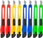 Exactly what You Need: Economical and disposable box cutting blades.Comfortable grip and wider retractable blade. Cutting with easy:Ready to use, cut and toss or keep some around as a spare utility knife in your garage, tool kit, home and office. 9MM WIDER BLADE - Heavy Duty Ideal for Thicker Cuts. Use for commercial or industrial applications like thicker paper, tape, plastic, cardboard, balsa, bass wood, photos, coupons, cardstock, mat board, foam board, delicate fabrics, crafts, amazon, ups or post office packages. Easy To Use :9mm wider blade for deep and easy cutting. Prevent blade slipping with the lock tab. Always keep your blade fresh and sharp by snapping off the blade for a new sharp cutting tip Customer Service :100% brand new and high quality,you will get friendly customer service. Product Description 12 SECTIONS SNAP OFF BLADES Each utility knife blade can be broken 12 times. When the tip of the blade wears out, you can break 1section, giving you a sharper cutting experience. Safety tips: Be careful when snap off the blade! SAFETY LOCK DESIGN The slider of the utility knife can control the blade to extend or retract. Pull out the back of the slider to lock the blade from sliding, helping you to make more precise cutting. EASILY BREAK THE BLADE Pull out the blade breaker at the tail of the razor knife, and snap 1 section blade into the blade breaker to break it.