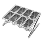 8 Pans Spice Rack Kitchen Storage Shelf Kitchen Spice Holder Stainless Steel Description Description Are you still struggling with the messy countertop? Our spice rack can solve your problem. High-quality stainless steel and exquisite craftsmanship make it sturdy and durable. The triangular structure design provides it with excellent load-bearing capacity, allowing you to use it with confidence. In short, it keeps your kitchen clean and organized, while keeping your cooking essentials within reach. Key Features Build to Last: Made of stainless steel with a polishing process, this product is wear-resistant, corrosion-resistant, safe to use, and durable, ensuring your long-term use. It is an ideal choice for various delicacies or commercial kitchens. Storage Assistant: With eight food pans, it can store various seasonings, vegetables, fruits, and other items (all are not included), keeping your kitchen clean and organized. Excellent Load-bearing Capa city: The triangular structure and stable foot pads allow this product to bear a weight of 33.07 lbs, allowing you to use it with confidence without worrying about shaking. Adjustable Length: You can adjust it to a maximum length of 25.59 inches and a minimum length of 13.98 inches, allowing you to easily customize the rack to accommodate various sizes of hotel pans. Simple Installation: A simple structure, a Chinese installation diagram, and complete accessories can help you quickly complete the installation, which is convenient. Details Protective Lid: The lid with a handle can prevent dust and insects from entering, keep the food fresh, and make it easy to close and open the item. Round Edges: The smooth and round edges are gentle on your skin, protecting your hands from scratches when picking up the items. Application It is suitable for storing various seasonings, vegetables, fruits, and other items in kitchens, buffets, dining activities, etc. Specifications Color: Silver Style: Modern Shape: Rectangle, Triangle Material: Stainless Steel Process: Polishing Number of Pans: 8 Assembly Required: Yes Mounting Type: Tabletop Pan Type: 1/9 Each Pan Capacity: 900ml/0.24gal Each Pan Depth: 10cm/3.94in Load-bearing Capacity: 15kg/33.07lbs Scalable Length Range: 35.5-65cm/13.98-25.59in Product Size(W*H): 36*23cm/14.17*9in Package Size: 41*31*16cm/16.14*12.2*6.3in Net Weight: 2.6kg/5.73lbs Gross Weight: 2.9kg/6.39lbs Package Included 1* Spice Rack 8* Food Pans 8* Lids 1* Chinese Installation Diagram All Accessories for Installation Notes Please note that this product does not include other items shown in the picture. Please allow the slight color difference caused by the shooting light and 1-3cm error due to manual measurement, and make sure you do not mind before you order. Description Payment Delivery details Terms of sales About us Contact us Payment We accept ebay payment 。 Fees such as import duties, taxes are not included in the item price or shipping costs. These charges are the buyer's responsibility. Delivery details Shipping: 2-9 working days to: USA Terms of sales We maintain high standards of excellence and strive for hundred percent customer satisfaction. Feedback is very important to us. We hope that you contact us immediately before you give neutral or negative feedback, so that we can address your concerns. It is impossible to address issues if we do not know about them! About us Your satis faction is our ultimate goal. We work hard to earn your trust and future business. Our certified technicians have tested each item before shipping. The unit comes with 1 year limited warranty on all manufacturing defects. a) If you receive a defective item, you may return it or ask for a discount. Please contact us within 14 days after you receive the package. b) What you returned must be intact and in its original packaging as re? u. Customer is responsible for shipping costs of the returned item. c) We will cover the cost of shipping back t with the shipping rate indicated in the registration page. We will send you a new unit or refund the full payment you paid. Thank you. Contact us Business Hour Business Hour: Monday To Friday: 8:30 AM to 5:00 PM (Beijing China time) Due to time zones, our reply to your questions may not be immediately. But within above working time, we will reply your email within 24 hours. If it's non-workdays, please kindly be patient and wait till Monday. Please contact us with ebay message. Please feel free to contact us if you have any questions. Monday To Friday: 8:30 AM to 5:00 PM (Beijing China time) Due to time zones, our reply to your questions may not be immediately. But within above working time, we will reply your email within 24 hours. If it's non-workdays, please kindly be patient and wait till Monday. Please contact us with ebay message. Please feel free to contact us if you have any questions. Feature 2 Special Fashion Design shipping notice Can not ship to Puerto Rico,Alaska/Hawaii Country of Origin Unknown Manufacturer Warranty 3 Years Herstellergarantie 3 Jahre Brand CNCEST Feature! Stable performance, durable Features Genuine Quality & Duable Type Spice Rack Material Stainless Steel Color Silver Shape Rectangle, Triangle Number of Pans 8 Assembly Required Yes Each Pan Capacity 900ml/0.24gal Each Pan Depth 10cm/3.94in Load-bearing Capacity 15kg/33.07lbs Scalable Length Range 35.5-65cm/13.98-25.59in Product Size(W*H) 36*23cm/14.17*9in Net Weight 2.6kg/5.73lbs Item Length As pictures Item Width As pictures Item Height As pictures