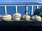 Comes with all 4 pots shown with their lids. All pots are new and unused only taken out of box to take pictures. Brass handles are old and have been sitting in box so may need some polishing. Any questions please ask
