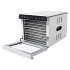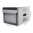 Specifications Model: SS-08A Material: 304 Stainless Steel, 201 Stainless Steel, Galvanised Sheet, Reinforced Glass Process: Galvanised Color: Silver, Black Style: Modern Shape: Rectangular Power Source: Corded Electric Plug Type: US Standard Assembly Required: No Mount Type: Countertop Light Source: LED Is Dishwasher Safe: Yes(For Trays Only) Voltage: 110V Power: 700W Fan Power: About 50W Frequency: 60Hz Temperature Range: 35-85°C/95-185℉ Time Range: 0-24 Hours Number of Tiers: 8 Noise: 45-50db Load Capacity: About 6-8kg/13.23-17.64 lbs Power Cord Length: 1.1m/3.61ft Package Included 1*Food Dehydrator 8*Trays 1*Power Cord 1*Food Recipe 1*Drip Tray 1*English Manual 8 Trays Food Dehydrator Machine Stainless Steel 700W Jerky Fruit Drying SS-08A Description Our food dehydrator is not only a great way to enjoy healthy and tasty food, but also a DIY experience.700 watts of power and an 8-tier structure allow you to quickly make large quantities of dried fruits or meats at once. The simple operating panel allows you to adjust the temperature and time, making it easy to use even for a layman. Key Features Sturdy and Durable: 201 stainless steel, 304 stainless steel, and galvanized sheet make the product high temperature resistant , corrosion resistant , non-toxic and odorless , safe for the human body, which can ensure long-term use. Efficient Drying : The built-in fan (about 50W) ensures even heat distribution across all tiers, maximizing drying efficiency, reducing drying time, and cutting energy consumption. This means your food will dry evenly and quickly, retaining essential nutrients and original flavor. Smart Control : Its temperature can be adjusted from 95-185℉ and time can be set from 0-24 hours. Put your ingredients in the dehydrator and set the temperature and time accordingly, and you can do other things without worrying about waiting. Embrace Healthy Life: It replaces the traditional sunlight irradiation mode and adopts a healthier, simpler, and more economical drying method, which is not restricted by the weather, and provides you with nutritious, natural, and healthy food without additives and preservatives so that you can enjoy a healthy life. 8-Tier Large Capacity : This product has a large drying space with 8 stainless steel trays, which allows you to dry large quantities of fruits, vegetables, meats, etc, which is easy to lock the minerals and vitamins in the food, and provides a lot of healthy and delicious natural food for the whole family. Safety Guard : The overheat protection function and multiple heat holes on the outside of the product can effectively ensure safety during use and avoid burnout or malfunction, so you can use it with peace of mind. Thoughtful Design : The reinforced glass cabinet door, built-in LED light, bright display, and sensitive touch keys allow you to check the drying status in real-time,which is convenient for you to adjust the settings in time. The double-layer stainless steel shell prevents heat loss, and better insulates, and maintains the flavor of the food. In addition, the low noise(45-50db) level does not disturb others. Enjoy Hands-on Fun: You can turn leftover fruits, ingredients, small fish, etc. into precious dried products, making full use of them and sublimating their original flavor. You can invite your friends and family to join you in this feast of culinary creations, sharing every step of the process from the selection of ingredients to the finished product, experiencing the joy of making with your own hands, and enhancing the bond between you and your friends. Easy to Keep Tidy: The smooth surface and simple construction allow you to simply wipe the dust off the machine with a soft cloth. In addition, the trays are dishwasher safe, saving you time. Protective Package: To prevent the product from being damaged during transportation, we packed it with foam to protect your products to the maximum extent possible. Details Practical Handles : The recessed handles on both sides of the body make it easy to move the product, and the handle on the cabinet door makes it easy to open and close the door. Drip Tray: It can be placed at the bottom of the product to catch water. Anti-slip Feet: The anti-slip feet at the bottom make the product fit the ground well, so it is stable and safe to use while preventing the base plate from being scratched. Long Power Cord: The 3.61 ft power cord reduces usage restrictions and further protects your safety. Application This product can be used to dry vegetables, fruits, beef jerky, meat, fruit peel, flowers, yogurt, nuts, dog food, herbs, and dried flowers. It is suitable for kitchens, restaurants, bakeries, cafes, fruit shops, snack shops, and so on. Specifications Model: SS-08A Material: 304 Stainless Steel, 201 Stainless Steel, Galvanised Sheet, Reinforced Glass Process: Galvanised Color: Silver, Black Style: Modern Shape: Rectangular Power Source: Corded Electric Plug Type: US Standard Assembly Required: No Mount Type: Countertop Light Source: LED Is Dishwasher Safe: Yes(For Trays Only) Voltage: 110V Power: 700W Fan Power: About 50W Frequency: 60Hz Temperature Range: 35-85°C/95-185℉ Time Range: 0-24 Hours Number of Tiers: 8 Noise: 45-50db Load Capacity: About 6-8kg/13.23-17.64 lbs Power Cord Length: 1.1m/3.61ft Product Size: 45*34*31.8cm/17.71*13.38*12.51in Gross Weight: 10.8kg/23.8lbs Net Weight: 9.8kg/21.6lbs Pakage Size: 51*38.5*35cm/20.08*15.16*13.78in Package Included 1*Food Dehydrator 8*Trays 1*Power Cord 1*Food Recipe 1*Drip Tray 1*English Manual Notes Please note that the package does not include any other food besides a food dehydrator. Please note that this product is not intended for drying chicken thighs, or sausages. Please read the instructions and product labels carefully before use and set the drying temperature and time according to the actual food. Please be safe with electricity and keep it out of the reach of young children. Please do not touch the machine and trays dire