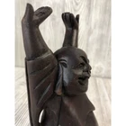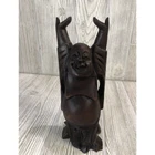 This beautiful hand-carved Buddha statue radiates warmth with its joyful smile and raised hands. The 8" wooden figure has a lovely vintage charm, with minor wear that adds character. The craftsmanship is impressive, making it a perfect spiritual centerpiece or gift. The small chip on the foot doesn’t take away from its peaceful presence—just full of positive vibes!