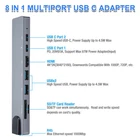 You may also like 8-Push 4-Pins Massage Chair Remote Control 6806 Compatible AM989 Massage Chair 63.8 USD 67.16 USD Free shipping 5% off 1080P 1x8 HDMI Splitter 1 in 8 Out, 8 Port Powered HDMI Splitter Multi Monitor 30.39 USD 31.99 USD Free shipping 5% off Car Cup Phone Holder 2in1 Car Cup Holder with Phone Mount, Cell Phone Cup Holder 13.29 USD 13.99 USD Free shipping 5% off Control Circuit Board Dashboard Assembly Set for Ninebot Segway ES1 ES2 ES3 ES4 28.49 USD 29.99 USD Free shipping 5% off Mini Fridge Stand Cart with Wheels - 220 LBS with Charging Station For Kitchen 59.99 USD Free shipping Waterproof Smart Bluetooth Fingerprint Padlock&keys Heavy Duty Locker Lock APP 46.54 USD 48.99 USD Free shipping 5% off 8 in 1 USB-C Hub Type C To USB 3.0 4K HDMI PD Adapter For iPhone Macbook Pro/Air Feature: -You can connect USB drivers, external disks to MacBook Pro, and other USB-C port equipped devices with this 8 in 1 Type C adapter. 4K HDMI-compatible video output, 1 Ethernet RJ-45 Port, 2 USB 3. 0 Ports, 2 Type C PD port, SD & TF card reader. It is also portable. You just need to slip this adapter into your bag for movies or business presentations on-the-go, etc. -4K 30 Hz or 2K 60 Hz displays are supported by the HUB HDMI-compatible Port. The Type-C to HDMI-compatible Adapter lets you extend the screen of your device and receive images in 4K UHD or full HD 1080P on HDTVs and PC Monitors or Projectors. -You can download more quickly and steadily when working or playing on the RJ45 Ethernet connection. Instant Ethernet is available at speeds of up to 100Mbps. -Three 3.0 USB ports to support transmission speed rates of up to 5 Gbps, which can connect to your smart phone, tablet and hard drive for effortless data transfer. -This product adopts cutting-edge heat dissipation technology to increase working life and provide superior performance, making it reliable and safe when 8 ports are used. Description: The 8-in-1 multifunctional Type-C HUB multiport adapter can solve the problem of a single device interface, and it can connect a variety of devices. The product is equipped with 4K HD dual-screen display, which can be connected to large-screen devices such as projectors, TVs, monitors, etc., and greatly improve office efficiency. Specification: Material: Aluminum Alloy Color: Silver HDMI-compatible Output Resolution: Up to 4K UHD Gigabit Ethernet: Up to 100Mbps USB-C Charging Port: Up to 60W Type: 8 in 1 USB C Hub Multiport Adapter 1 * 4K Ultra HD HDMI-compatible Port - Connect the device to the HDMI-compatible Port, your TV or computer or projector will deliver you 4K * 2K (3840 * 2160) high quality video and audio. Enjoying your big screen time. 1 * Ethernet - Max Ethernet speed 1000mbps. 1 * USB C PD Port - 3A/20V support max 87W power adapter. You can charge your phone faster while working. 1 * USB C Data Port - High Speed Power Supply Up to 4.5W Max. 1 * USB 2.0 Port- High Speed Power Supply Up to 4.5W Max. 1 * USB 3.0 Port - High Speed Power Supply Up to 4.5W Max. Supports USB flash drive, external hard drive, keyboard, mouse, printer, MP3 player etc. 2 * SD/TF Card Reader - SD/TF can work simultaneously. Read an werite speed depends on card's quality. Examples of compatible devices: Applicable to Apple MacBook, Huawei MateBook, Xiaomi notebook and Huawei P30, Mate20, Samsung S9, S10 series mobile phones. Laptop Support list: For Apple: 12-inch MacBook, 2016/2017/2018 MacBook Pro, Mac Mini/ 2018 MacBook Air For Huawei: MateBook13, MateBook, MateBook X, MateBook X Pro, MateBook E For Glory: MagicBook For Xiaomi: Air 12.5, 13.3-inch, Pro 15.6-inch, 15.6-inch GTX version, Xiaomi game book, Xiaomi game book 8th generation For HP:Pavilion x2, Spectre 13, EliteBook Folio G1, Envy 13 For ASUS:Lingyao 3, U306, U321 series, U4100, ROG series For Dell : XPS13, XPS15 For Lenovo : Xiaoxin Air 12 inches, Yoga5 Pro, Yoga900 13 inches, ThinkPad X1 Carbon 2017 For Samsung: NoteBook series, GalaxyBook series For Google : ChromeBook Pixels, PixelBook Pen For Razer: Blade Stealth Spirit Blade, Spirit Blade Stealth Edition For Microsoft : Surface Book2, Surface GO PC Support list: For Apple: 2018 11-inch iPad Pro, 2018 12.9-inch iPad Pro For Huawei: HuaweiM6 10.8 inch, Matepad Pro Mobile phone Support list:For Samsung: S8, S8+, S9, S9+, S10, S10+, Note 8, Note 9, Samsung Galaxy For Huawei: Mate 30, 30 Pro, 30 RS, Mate 20, Pro Mate 20X, Mate RS, P20/Pro, P30/Pro, P40/P40 Pro/P40 Pro+Mate 10/10 Pro For Glory: Note 10, V20 For Microsoft: Microsoft 950XL Microsoft 950 For OPPO: R17 Pro For LG: FGF70 (G5), V300L For One Plus: 7 Pro, 7T/7T Pro, 7T Pro McLaren Edition For Awl: Nut R1, Nut Pro 2S For Black Shark: Black Shark 2 For ZTE: Tianji 9 Package Content: 1*8 in 1 USB C Hub Multiport Adapter