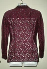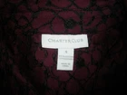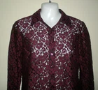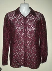 this is for a Charter Club Top It is preowned, It has no rips, tears or stains. IT is made of cotton and nylon The shirt is dark purple. IT is made of heavy weight lace and is see thru in some areas. It buttons down the front. IT has a collar. IT has long sleeves. IT does have stretch. IT has slits on the hips and a straight across hem. It measures armpit to armpit laying flat is 18". It measures down the back is 23". IT is a size 4 Manufacturers sizing's due vary please check measurements. If you have any questions or problems - before or after. Please message me.