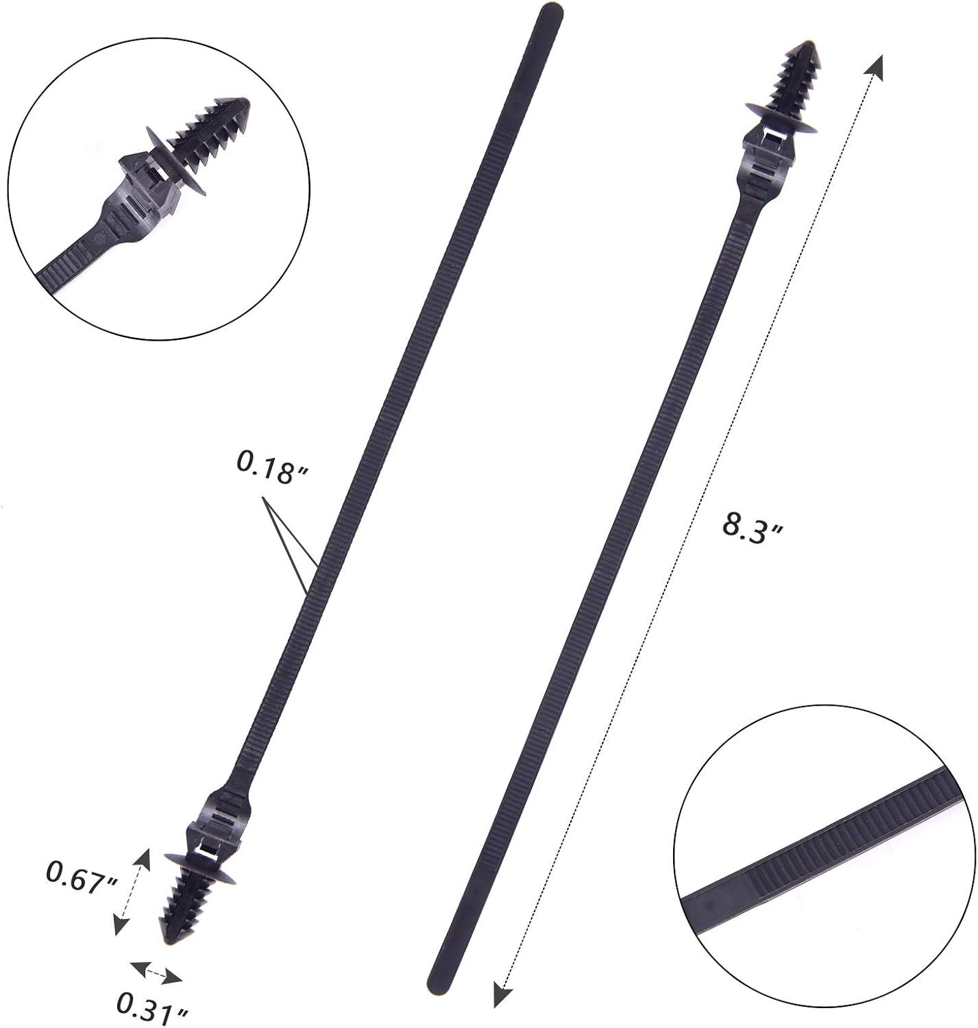 ☑PACKAGE INCLUDE:80 Pcs x Nylon Cable Ties, 210mmx 4.5mm /8.3"x0.18"(L*W); Head Diameter: 8mm/ 0.31"; Fits into 1/4" holes. ☑DURABLE MATERIAL :Our Wire Harness Routing Clip Assortment set are made of high quality material.More stronger,robuster and vibration resistanter,would not break or crack easily,Made of industrial strength 6/6 nylon material, which yields higher break points, even at colder temperatures. ☑WORKING TEMPRATURE: Effective under a wide range of temperatures, -40 ~ 266°F (-40 ~ 130°C). ☑APPLICATION: Widely used in household, construction industry, electronic industry, auto industry, cable and wire assembly, packaging and shipping, outdoor activities ☑100% Satisfaction Guarantee!We perform piece-by-piece QC inspections and pack each item we sell carefully with enough bubble warp to avoid shipping damage, and offer 30 days no question asked refund warranty. If for any reason you're not 100% SATISFIED, please let us know and our customer service team will help you return or refund. Product Description Niteguy 80 Pack Cable Zip Ties, 8.3inch Nylon Push Mount Self Locking Cable Ties Quality and Prodigious Durability is what defines a product. The sheer strength of our cable ties alone allows you to be more diverse and creative when accomplishing tasks in any project or daily routine you may encounter. (Widely used in household, construction industry, electronic industry, auto industry, cable and wire assembly, packaging and shipping, outdoor activities.etc…) Heat&Cold Resistant Zip Ties The black zip ties heavy duty working temperature: -40 ~ 266°F (-40 ~ 130°C),Made with durable nylon material, weather resistant and outdoor in direct sunlight application is not an issue. UV Resistant Black Zip Ties Black zip ties are made from UV Resistant Nylon 66 giving them excellent durability in harsh conditions. Others Cable ties without UV inhibitors become brittle and decay when left in the sun. 80Pcs Nylon Cable Zip Ties Dimension Size: 210mm*4.5mm/ 8.3" * 0.18"(L*W); Head Diameter: 8mm/ 0.31"; Fits into 1/4" holes. Note: Please must check the size