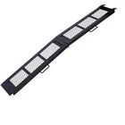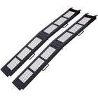 800LBS Steel Loading Ramp, Portable Motorcycle Ramp,Folding ATV Ramp for vehicle Features Robust Construction: This ATV ramp is constructed from heavy-duty steel material, ensuring durability and long-lasting performance. The black powder coated steel is resistant to breakage, rust, and scratches, providing a reliable solution for your loading needs. Unfolded Size: 83"x11" folded Size: 41.7"x13.5"x5.5“ Heavy-Duty Capacity: Our truck ramp is designed to carry up to 800 lbs(360kg)/PC when evenly distributed. Safety is paramount – when extending the motorcycle ramp, it's crucial to securely place your rubber-coated fingers on the tailgate to facilitate safe loading. The maximum loading height is 30" (76cm) to prevent steep ramp angles, reducing the risk of accidental injuries. Enhanced Functional Design: Featuring sturdy hinges that allow for convenient folding and storage without occupying excessive space, our foldable ramp is designed for optimal functionality. Its resilience to adverse weather conditions and easy-clean properties make it a versatile and low-maintenance option. The mesh surface provides reliable traction and prevents debris accumulation, while the extended tailboard facilitates easy equipment loading. Versatile Usage: This heavy-duty ramp is suitable for loading a variety of vehicles, including motorcycles, dirt bikes, ATVs, UTVs, snow blowers, and lawn mowers onto trucks or garages. Whether loading two-wheeled or four-wheeled vehicles, our ramp offers a convenient and practical solution. In the case of four-wheeled vehicles, the purchase of two ramps is recommended for secure loading. Important Reminder: Ensure the secure attachment of the ramp to the vehicle using the adjustable strap to prevent sliding or disengagement during loading. Riding or driving vehicles on the ramp is strictly prohibited for safety purposes.