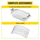 Product Description 0.8L Ultrasonic Cleaner 360-degree Cleaning & Adjustable Timer & Durable Material Get a professional ultrasonic cleaning at home!!! 40KHZ ultrasonic wave, deeply wash dirt, grime, oil on your valuable's surface, long hole, crevice and shelter. Give you a brand new & shiny item after fully washed. 0.8L tank, works for small-sized products. Low noise and powerful, suitable for home, commercial or lab occasion. Note: Since our ultrasonic cleaner has been upgraded & updated, the product (in metal or plastic handle) will be delivered randomly. 40 KHz Powerful Transducer Timing Functions Premium Quality User-friendly Design Key Features Deep and Gentle Clean 35W industrial-level transducer, emit 40,000KHz ultrasonic wave. Create millions of microscopic cleansing bubbles that powerful remove dirt & grime on surface. No need of chemical or scrubbing. Adjustable Time Microcomputer with timer, support 0-15min working time selectable. Easy to increase/decrease the time with buttons on front panel. Also, with a LED screen to display time. Premium Quality Upgrade 304 stainless steel tank, anti-rust and for better corrosion- & heat-resistance. Integral construction, no water leakage ensured. Have longer service time with 201 stainless steel cover. Complete Accessories Come with a washing basket, help to reduce frictions and protect them on washing. Especially suitable for small stuffs, like: earrings, necklace, sunglasses, dentures, tattoo guns etc. Humanized Design Compact size with large 800ml tank, adequate to clean items thoroughly at a time. Save time and efforts. Also, with lid to prevent water splash, leakage-proof jack and great heat dissipation. Multiple Scenes Portable ultrasonic cleaner, easy to move and storage. Perfect for washing items in different fields: Jewelry, Lab, Circuit Board, Dental Devices, Dishware, Industry etc. Things will look new & shiny after wash. Specifications Input:110V Ultrasonic Frequency: 40KHZ Tank Size: 5.9"×3.35"×2.6"/ 150 x 85 x 65 mm Working Time: 0-15 Minutes Transducer Power: 35W Screen: LED Display Product Size: 175x110x125 mm/6.89"x4.33"x4.92" Product Weight:1.35 kg/2.97lbs Package Content 1 x Ultrasonic Cleaner 1 x Cleaning Basket 1 x Stainless Steel Lid 1 x Jewelry Cleaning Ball 1 x Power Supply 1 x User Manual Features & Details 40 KHz Powerful Transducer: Input: 110V; Ultrasonic Transducer Power: 35W; Ultrasonic Frequency: 40KHZ; Built-in powerful transducers, strengthen the ultrasonic power and make superior cleaning outcome. 0.8L tank to hold small-sized items, and it is low noise on use. Never disturb your other works. Timing Functions: Built-in microcomputer and timer, it supports 0-15 minutes working time select and display. Auto start cleaning after setting. Get brand-new valuables after it finished. Save time, money & labor for you. Premium Quality: Made of high quality 304 stainless steel. Anti-rust to different kinds of solutions, corrosion-resistant and no water seepage. User-friendly Design: Tabletop ultrasonic washer, light-weight and easy to carry/move. It is designed for better customer use: washing basket, safe socket, heat dissipation, anti-slide rubber feet, and top lid with handle. Versatile Cleaning Field: Works great to remove oil, wax, stain quickly. Perfect for cleaning the long hole, crevice and shelter of piece part or work piece, no need to touch cleaning fluid by your hands. Commercial, home & industrial use are acceptable.