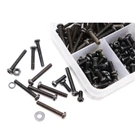 Package details: 50Pcs M3 x 20mm 50Pcs M3 x 16mm 50Pcs M3x12mm 50Pcs M3x10mm 50Pcs M3x8mm 50Pcs M3x6mm 50Pcs M3x4mm 150pcs M3 Spring Washer 150pcs M3 Nuts 150pcs M3 Washer Include size: M3 x 4mm/ 6mm/ 8mm/10mm/ 12mm/ 16mm/ 20mm; Package: M3 Phillips Head Screws + M3 Spring Washers + M3 Flat Washers + M3 Nuts in a box; Material: Q215 Carbon Steel; Color: Black; Quantity: 800pcs; Product name: Black M3 Screws Nuts Washers Assortment Kit;