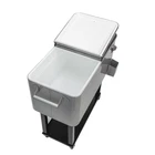Adopting high quality iron spray material, it features stable, sturdy, durable and environment friendly. What's important, it has warm and cooling functions. It can keep the warm food above 40 ℃ for 4-5 hours and preserve cool for up to 48 hours with ice sheet. Features: . Produced by high quality iron spray material, wear resistant and environment friendly . With two directional wheels, can stop at any time . Warm function, can keep the warm food above 40 ℃ for 4-5 hours . Cooling function, cool preservation for up to 48 hours with ice sheet . Concise design and exquisite workmanship . The capacity is 80 QT Specifications: 1. Tray: Yes 2. Lid Handle & Bottle Opener Material: 430 Stainless Steel 3. Pallet & Foot Tube Material: Iron 4. Capacity: 80QT 5. Bearing: 250 lbs 6. Weight: 42 lbs 7. Surface Type: Iron Spray Plastic Package Includes: 1 x Rolling Cooler