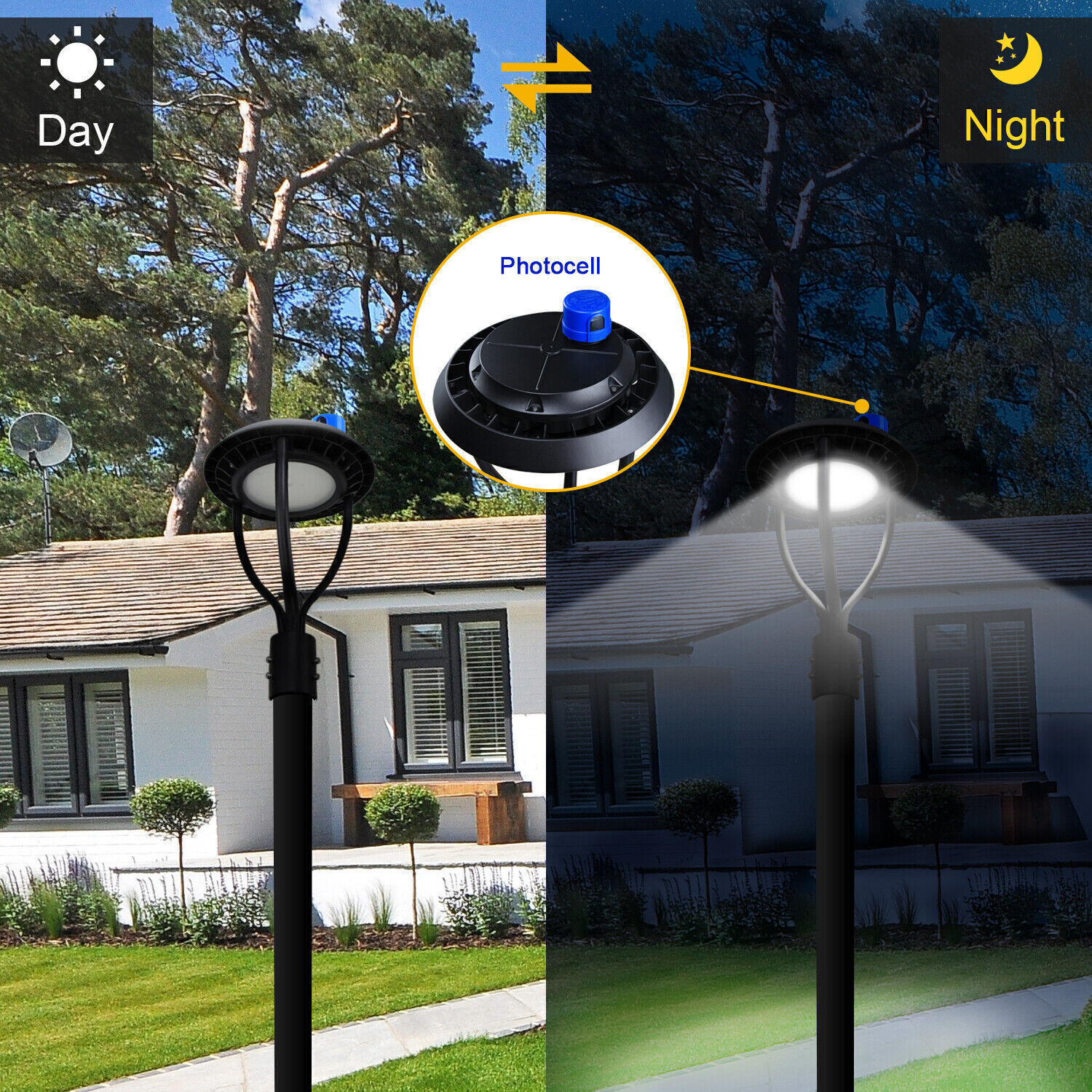 Product Description 80W LED Post Top Light(300w MH HID Equal)for Garden Pathway Yard Street Security Light Up Larger Area - The 80w light post bring 10800Lm with SMD3030 chips, up to 135lm/watt, AC 100-277V universal voltage and 120°beam angle. 5000K color temperature of lighting is a nice choice for street light illumination. Anti-shock, anti-moisture, no glare, no strobe light, no ghosting, protecting your eyes. Dust to Dawn Photocell - The Led circular post top pole light comes with photocell sensor outside automatically turns ON at sundown/night and light post at sunrise/daytime with dusk to dawn, high power factor >0.9, more than 50000hours lifespan, reduce your electricity consumption, save your electronic bill. Provides a continuous, efficient outdoor lighting environment. Commercial Grade Material - The DLC/ETL Listed post pole light fixture made of die-casting aluminum body + protective glass cover. The scientific design helps the exterior light post top to dissipate better, achieve the best use of the led lighting post. IP65 waterproof for drying, wet environment, sandstorms, snowstorms, and harsh weather conditions. Wide Application - The circular post top design give the lamp a uniform brightness and can be applied to a variety of outdoor scences, such as pathway, street, front yard, city expressway, trunk/rustic road, factories, playground, school, garden, courtyard, parking lot, public park, walkway, exterior, driveway, store, farmyard or any other commercial and industrial area. Installation and Warranty - The pole mount of our post area light fits for a 2 3/8-inch OD tenon & less than or equal to 3 inch standard pole, very easy to install and transfor(Please see the video on the product page for more installation info). KUKUPPO offer you lasting safety and reliability backed by a 5-year warranty. For a bulk order, email us in advance to get a different offer. Specifications: Rated Wattage: 80W Luminous Flux: 10800Lm Color Temperature: 5000K Protection Grade: IP65 Material : Aluminum Body+Glass Cover Input Voltage : AC100-277V 50/60Hz Dimension: Dia 460x625 mm Base: 2 Pins Wire Power Factor: >90% Beam Angle : 120 degrees Average Lifetime : More than 50000 hours Flexible Installation The pole mount of our post area light fits for a 2 3/8-inch OD tenon & less than or equal to 3 inch standard pole, very easy to install and transfor Commercial Grade Material DLC/ETL Listed quality. Scientific design helps the exterior light post top to dissipate better, achieve the best use of the led lighting post. Durable Support Rod Made of thick aluminum, stable and strong, waterproof and rustproof. High performance quality provides with lasting safety and reliability. Ultra Bright LED Chips With SMD3030 chips, up to 140lm/watt. Anti-shock, anti-moisture, no glare, no strobe light, no ghosting, protecting your eyes. Kindly Note Please note that the light can not be used IN the water. Please confirm the wire connection is right while installing. About Us Payment Shipping Returns Contact Us SHENZHEN NUOGUAN TECHNOLOGY CO. LTD founded in 2010. We are high-technology comany specialized in manufacture Commercial and industrial LED light. Advanced production equipment and excellend R&D ability help us to combining service ,production sell together provide top-level products to our customers. 1. Payment is expected within 7 days of auction close. Or Unpaid Items will be forfeited per eBay . 2. Taxes may be applicable at checkout as states adopt new laws and regulations regarding sales tax collection. 1. We ONLY ship to USA . 2. Orders processed within 1-2 business day of payment verification. There’s no Delivery service or courier service on Saturdays, Sundays or Public Holidays. 3. We have 3 different warehouse in US,so due to stock status and time differences, we will choose to ship your item from our first available warehouse for fast delivery. 4. We offer Free Shipping within the Lower 48 states! All packages are sent via UPS or USPS.The delivery time for UPS Ground is typically 2-5 business days. We strive to ensure 100% satisfaction for each and every one of our customers. we offer a 30-day 100% money-back guarantee on all eBay orders. If your item isn't just as you wished, simply send it back to us and we'll refund or replace your item. Please note that all returns must be authorized by our Customer Service department. please contact us though message first if you have any problem. USA Warehouse. Fast shipping! We are appreciated your purchasing form our eBay store. Office Time: 9:30 - 18:30, Monday - Saturday (UTC+8) Please contact us with eBay Message. We will respond you within 24 hours on business day. About Us SHENZHEN NUOGUAN TECHNOLOGY CO. LTD founded in 2010. We are high-technology comany specialized in manufacture Commercial and industrial LED light. Advanced production equipment and excellend R&D ability help us to combining service ,production sell together provide top-level products to our customers. Payment 1. Payment is expected within 7 days of auction close. Or Unpaid Items will be forfeited per eBay . 2. Taxes may be applicable at checkout as states adopt new laws and regulations regarding sales tax collection. Shipping 1. We ONLY ship to USA . 2. Orders processed within 1-2 business day of payment verification. There’s no Delivery service or courier service on Saturdays, Sundays or Public Holidays. 3. We have 3 different warehouse in US,so due to stock status and time differences, we will choose to ship your item from our first available warehouse for fast delivery. 4. We offer Free Shipping within the Lower 48 states! All packages are sent via UPS or USPS.The delivery time for UPS Ground is typically 2-5 business days. Returns We strive to ensure 100% satisfaction for each and every one of our customers. we offer a 30-day 100% money-back guarantee on all eBay orders. If your item isn't just as you wished, simply send it back to us and we'll refund or replace your it