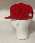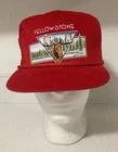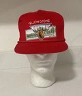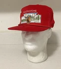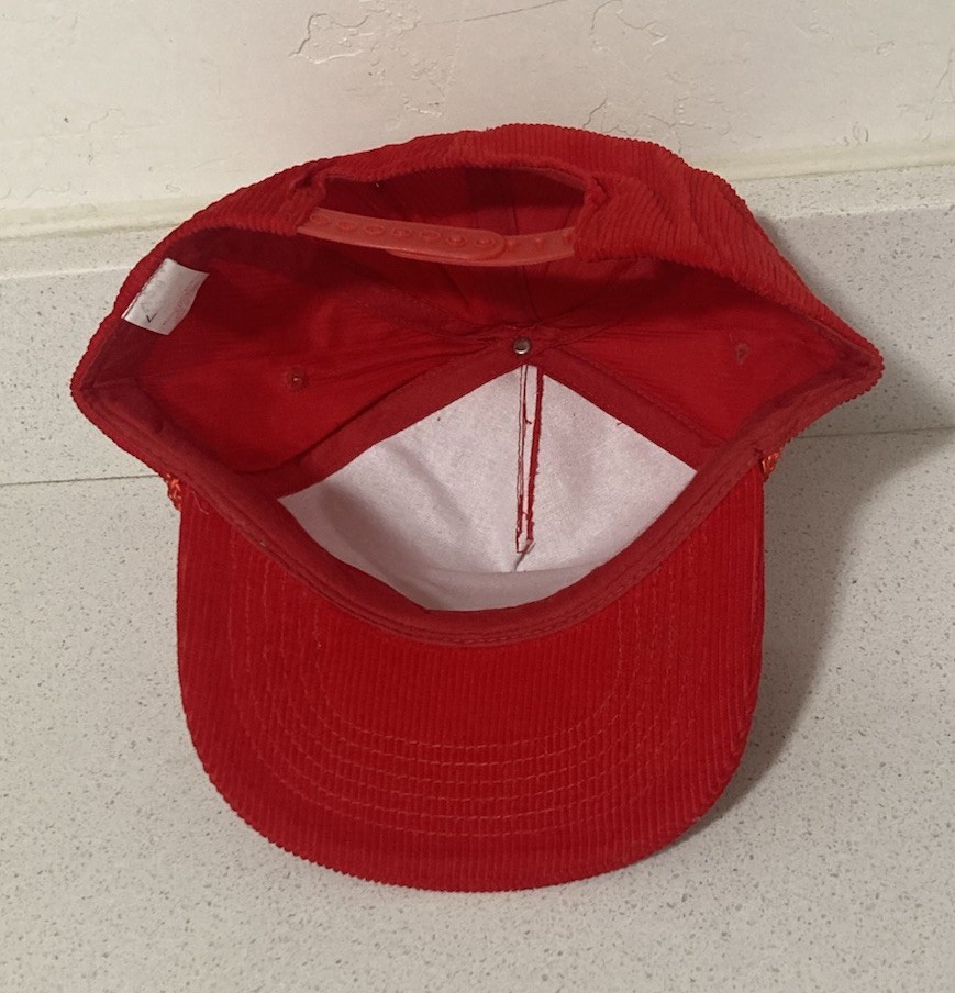 80s YELLOWSTONE MOOSE corduroy snap-back/trucker hat color red, vintage tag YELLOWSTONE MOOSE graphic on the front. adjustable adult size Large. YELLOWSTONE vintage corduroy hat pre-owned in good condition