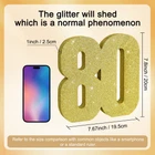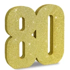 Product informatio 1*80 gold glitter number decoration. Size: 20*20*3CM.(7.8*7.8*1.2 Inch) Exquisite design The appearance is made of fine golden glitter, and the "80"-shaped wooden decoration is fully wrapped 360 degrees. When light hits it, it reflects and glows, attracting everyone's attention.This is a great party decoration. The shining points twinkle like the charming starry sky. Usage scenario Suitable for 80th birthday party, 80th anniversary party, 80th anniversary celebration party. Especially used during the day when there is strong light or at night when there is light. It will brighten up your party. Advantage All-in-one product design, no assembly required. You just open the package and place it where you want to decorate and add to the party atmosphere. The items compared with other products, the powder falling off phenomenon is relatively small. It won't cause problems for your party. ITEM INFORMATION AND SIZE: 1 Pcs * 80 Gold Glitter Number Ornament. Size: 7.8 * 7.8 * 1 inches (20*20*2.5cm). Before purchasing, Please check the size carefully to make sure it meets your needs PLEASE NOTE: Adorned with gold glitter powder, this item beautifully reflects light and is perfect for party decorations. However, please note that due to the use of glitter powder in its craftsmanship, a small amount will fall off. This is normal and should be expected. Therefore, please take care to keep other items free from the powder HIGH QUALITY: The item uses high-quality wood and glitter powder, and the texture is great. Compared with other item, the phenomenon of powder falling off is relatively minor. It won't ruin your party EASY TO USE: The integrated design of the product requires no assembly. You only need to unpack it and place it where you want to decorate, adding to the party atmosphere USAGE SCENARIOS: This Gold Glitter Number Centerpiece is a Great Party Decoration for Birthday,Halloween,Thanksgiving,Christmas,Valentine's Day,2025 Graduation,Birthday,Wedding,Bridal Shower,Bachelorette,New Year Eve,Halloween,Christmas,Independence Day,Father's Day,Mother's Day or Other Party Occasions