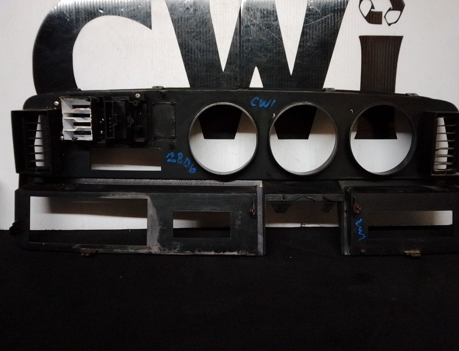 This product is an instrument cluster dash bezel trim panel with an air conditioning switch for the 81-93 Dodge D150 Ramcharger. The black plastic panel is a direct replacement part that does not require any modifications for installation. It is designed specifically for the left side of the vehicle and is a vintage part with a matte finish. The panel includes features such as no drilling required for attachment. It is a genuine manufacturer part from Dodge RAM MOPAR and Chrysler Truck.