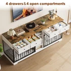 Ample Space for Dogs - 82"L x 19.7"W x 33.5"H. The dog kennel furniture can allows 2 large dogs to have a comfortable and spacious living space, avoiding anxiety and unease due to limited space, providing your furry friend with a safe and comfortable area to relax and unwind. Multi-functional Storage Options - This double dog crate with 2 large storage drawers to keep your pet's toys, clothes and other items neatly organized, 4 adjustable open storage compartments for storing dog food and other bulky items at will, a variety of storage methods to solve all your storage problems. The top surface provides ample space for placing decorations or items, dding a practical touch to its classic and simple design. Modern Furniture Dog Crate - 3 colors are available (White/Brown/Black), it can be used as a dog cage TV stand, storage cabinet in your living room, bedroom and other various places, suitable for various decoration styles, Add a warm and cozy atmosphere to your home. Sturdy and Reliable Construction - Crafted from high-quality wooden boards with a wear-resistant, non-toxic finish&easy to clean, this dog kennel furniture serves as a safe and comfortable. Heavy-duty base and sturdy construction keep the dog crate cabinet stable and won't let out any squeaks. Comprehensive After-Sale Services - This product is assembled and shipped by 2 packages, please wait patiently for all the packages, please read the installation instructions carefully before assembling, any questions contact us in time, professional and patient after-sales team will solve all your troubles!