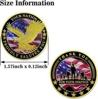 Still wondering what to add in a collection ? A special and long-last memory gift? Or the connection between you and your most important one. You can always find your own treasure here. About the item Our challenge coin set includes 82 pieces military challenge coins. All of these coins are 1.57 inch in diameter and 0.12 inch in thick, and they are made of high quality of iron plated imitation gold. Each veterans thank you coins comes with a clear plastic protective case. It's very easy to carry in your daily life, such as put it in a pocket, purse, backpack, or put it on display on any table or desktop. You can proudly give them to the men and women in the military who work hard to keep our communities and country safe, to thank them for their service and to show your respect . The military appreciation coins are double-sided designed, the front says, " YOUR NATION PROUDLY SALUTES YOU ", the back says, " THANK YOU FOR YOUR SERVICE ". Exquisite workmanship, it is very suitable as a gift for the soldiers who work hard to protect the security of our communities and our country, express honor, gratitude and respect the military warriors. These army challenge coins are also suitable as veteran gifts, military gifts, graduation gifts, thank you gifts for your family, friends, colleagues, neighbors on Veterans Day, Graduations, Thanksgiving, Christmas, etc. Owing it, challenging your life, showing your strong, never give up. SUPER ATTENTION IF THERE HAVE MORE COIN BUYING, MORE DISCOUNT WILL GAIN FOR YOU. Package Each coin will be packed up individually with a plastic case suit in opp bag. Shipping We'll start shipping as soon as possible within 3 business day normally. Tracking will be available after several hours. Feedback We try to make sure ALL customers are satisfied with our services, if you do, a POSITIVE feedback is appreciated, thank you very much. And we always leaving a positive one for customer when item is delivered successfully. Contact Us Feel free to contact us at any time, we're happy to help. You can reach us by eBay or E-mail. Have a nice day! Pls check the item specification carefully before buying it.