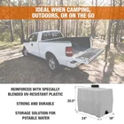 by Buyers Products polyethylene storage tanks are designed for convenient dispensing and storage of chemicals, excluding flammable hydrocarbons. Approved for potable water, agricultural chemicals, industrial chemicals, and other non-flammable liquids. Tank is not intended for fuel storage 30 gallon capacity with 5-1/2" lid (5" diameter hole), 3/4" NPT outlet for water and other non-flammable liquids Thick walled, heavy-duty design Molded-in graduation marks in gallons & liters Translucent polyethylene material for easy visibility of water Molded-in channels for saddle straps