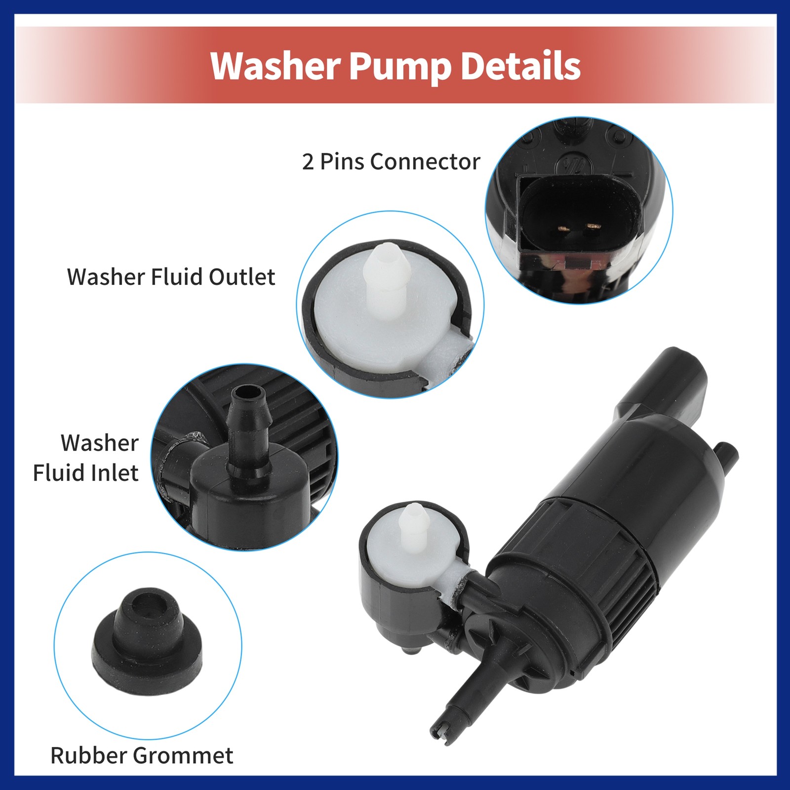 Document Features:Washer Fluid Pump can quickly and effectively wash away the dirt on the windshield. Provide a clear driving view.When Need To Replace Washer Pump: If your windshield washers don't spray or uneven spraying, washer fluid reservoir leaks, the weakening of the water pressure and so on, you may need to replace the windshield washer fluid pump and grommet.The windshield cleaning fluid pump is made of plastic material. Durable, can provide you stable and efficient water spraying effectt and with a rubber grommet, have good sealing, which can prevent leaks of cleaning fluid.This is non-OEM product, accessory ONLY!OE Number:84801575Specification:Color: BlackMaterial: PlasticPin Number: 2 PinsType: Washer PumpFit for:for Chevrolet Bolt EUV,EV 2022-2024for Cadillac Escalade ESV 2021-2024for Chevrolet Suburban 2021-2024for Cadillac Escalade 2021-2024for Chevrolet Tahoe 2021-2024for GMC Yukon 2021-2024for GMC Yukon 2021-2024Installation:1. Take the wheel off2. Unplug the old washing pump3. Replace the rubber gasket4. Insert the new washing pump into the storage tank with the same hosesPackage Includes:1 Pc Windshield Washer Pump with Grommet 84801575 Windshield Washer Pump for Cadillac for Chevy for GMC 21-24 Features: Washer Fluid Pump can quickly and effectively wash away the dirt on the windshield. Provide a clear driving view. When Need To Replace Washer Pump: If your windshield washers don't spray or uneven spraying, washer fluid reservoir leaks, the weakening of the water pressure and so on, you may need to replace the windshield washer fluid pump and grommet. The windshield cleaning fluid pump is made of plastic material. Durable, can provide you stable and efficient water spraying effectt and with a rubber grommet, have good sealing, which can prevent leaks of cleaning fluid. This is non-OEM product, accessory ONLY! OE Number: 84801575 Specification: Color: Black Material: Plastic Pin Number: 2 Pins Type: Washer Pump Fit for: for Chevrolet Bolt EUV,EV 2022-2024 for Cadillac Escalade ESV 2021-2024 for Chevrolet Suburban 2021-2024 for Cadillac Escalade 2021-2024 for Chevrolet Tahoe 2021-2024 for GMC Yukon 2021-2024 for GMC Yukon 2021-2024 Installation: 1. Take the wheel off 2. Unplug the old washing pump 3. Replace the rubber gasket 4. Insert the new washing pump into the storage tank with the same hoses Package Includes: 1 Pc Windshield Washer Pump with Grommet ITEM SPECIFICS Brand switchpart Type Washer Pump Placement on Vehicle front Manufacturer Part Number 84801575 OE/OEM Part Number 84801575 Material Plastic Universal Fitment No Items Included Washer Pump Attachment Type Insert Manufacturer Warranty none Interchange Part Number 84801575 Superseded Part Number 84801575 Product Name Washer Pump Net Weight 147g Shell Color Black Other Part Number 84801575 Dimension 3.9"x3.4"x2.6" Package Content 1 Pc Windshield Washer Pump with Grommet Note This is not oem product,accessory only. NOTICE If you have any questions, please feel free to contact our customer service. Our response will be faster than eBay! Our Handling Time: within 24 hours on weekdays eBay Handling Time: 72 hours ABOUT US SHIPPING POLICY PAYMENT RETURN CONTACT US We are committed to providing professional, safe and effective personal care products. We strive to provide customers loved products at the competitive price. We work with suppliers to discover practical, easy-to-use personal care products. Our store not only offers quality products at the competitive price, but also has professional customer service, offers you comfortable shopping experience. Please don't forget to follow us on eBay. We will continue to update and provide more and more practical personal care products. switchpart thank you for your business! We work hard to safely and securely ship your order in the least amount of time. Storewide free shipping in United States. All our items will be shipped to buyer's address, please confirm your address on eBay before you purchase. Taxes and other charges are included in the item price or shipping charges. Buyers are responsible for these charges. We accept payment methods show in payment details. Payment must be received within 7 days of auction closing. According to eBay guidelines, all unpaid purchases case will be opened automatically. If you need to specify the color or other information for the items you purchased, please Click here to contact us directly with item # and your eBay ID. We offer a 30 day return policy. This is under the following conditions: The item must be unused and in a resalable condition otherwise are not eligible for a refund. All items returned by post are returned at your expense, we cannot be held responsible for this. Please use a traceable service. Generally we answer emails within 24 hours (excluding weekends & holidays). Questions or comments? We welcome your inquiry! Please feel free to contact us directly. Description Policy 84801575 Windshield Washer Pump for Cadillac for Chevy for GMC 21-24 Features: Washer Fluid Pump can quickly and effectively wash away the dirt on the windshield. Provide a clear driving view. When Need To Replace Washer Pump: If your windshield washers don't spray or uneven spraying, washer fluid reservoir leaks, the weakening of the water pressure and so on, you may need to replace the windshield washer fluid pump and grommet. The windshield cleaning fluid pump is made of plastic material. Durable, can provide you stable and efficient water spraying effectt and with a rubber grommet, have good sealing, which can prevent leaks of cleaning fluid. This is non-OEM product, accessory ONLY! OE Number: 84801575 Specification: Color: Black Material: Plastic Pin Number: 2 Pins Type: Washer Pump Fit for: for Chevrolet Bolt EUV,EV 2022-2024 for Cadillac Escalade ESV 2021-2024 for Chevrolet Suburban 2021-2024 for Cadillac Escalade 2021-2024 for Chevrolet Tahoe 2021-2024 for GMC Yukon 2021-2024 for GMC Yukon 2021-2024 Installation: 1. Take the wheel off