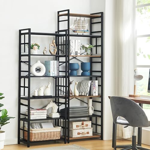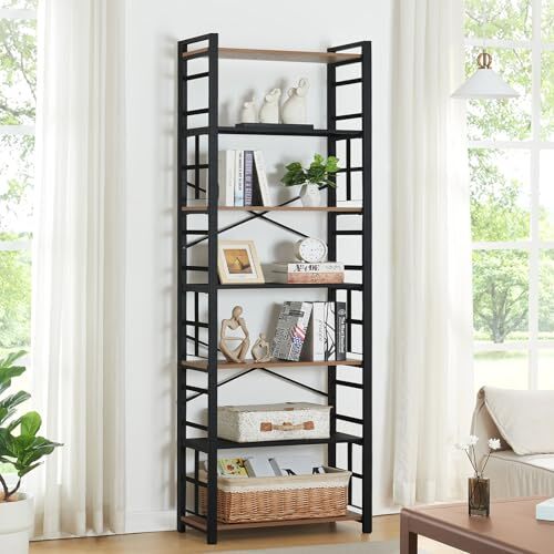 This bookshelf is a game-changer! The sturdy metal frame and rustic wood shelves give it a perfect industrial-chic look while holding tons of books and decor. Love how the X-shaped back adds stability—no wobbles at all. Super easy to assemble, and the rich brown finish elevates any room. Arrived quickly and well-packaged. Perfect for offices, living rooms, or bedrooms—so much storage without taking up too much floor space. Highly recommend!