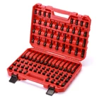 The 84 Pieces 3/8" Dr. Master Hex Bit Impact Socket Set, CR-MO, SAE/Metric, Impact Grade, 3/8" Drive Allen Bit Socket Set, which is manufactured from premium impact grade chrome molybdenum steel construction with corrosion-resistant black phosphate finish for durability. High-contrast size marking is permanently laser and easy to read, even in low light. Come with a heavy duty blow molded storage case, easy to carry. Meets or exceeds ANSI performance standards. It comes with 1 year quality warranty. Manufactured from premium impact grade chrome molybdenum steel construction with corrosion-resistant black phosphate finish for durability. 14PCS 3/8"Dr. Hex Bit Impact Sockets(102mm): 4mm, 5mm, 6mm, 7mm, 8mm, 10mm, 12mm, 3/16", 7/32", 1/4", 5/16", 3/8", 7/16", 1/2" 18PCS 3/8"Dr. Hex Bit Impact Sockets(52mm): 4mm, 5mm, 6mm, 7mm, 8mm, 9mm, 10mm, 12mm, 14mm, 3/16", 7/32", 1/4", 5/16", 3/8", 7/16", 1/2", 9/16", 5/8" 9PCS 3/8"Dr. Star Bit Impact Sockets(40mm): T20, T25, T27, T30, T40, T45, T47, T50, T55 34PCS 3/8"Dr. Stubby Bit Impact Socket(29.4mm): 1/4", 5/16", 3/8", 7/16", 1/2", 9/16", 5/8", 3/4", 6mm, 7mm, 8mm, 10mm, 12mm, 14mm, 17mm, 19mm, TT10, TT15, TT20, TT25, TT27, TT30, TT40, TT45, TT47, TT50, M4, M5, M6, M8, M10, M12, M14, M16 Meets or exceeds ANSI performance standards. It comes with 1 year quality warranty.