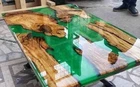 84"x42"Green Epoxy River Table Top, Epoxy Dining Table, Walnut Wood Epoxy Table
