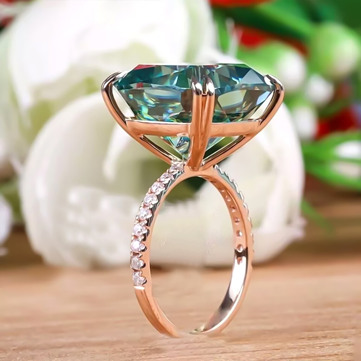 17.60 Ct Blue Emerald Cut Diamond Ring 925 Silver Bold Statement Gift Ring