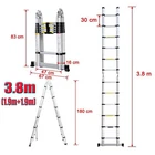 8.5/16.5/20.78FT Multi Use Aluminum Ladder Heavy Duty Folding Ladder/Safety Hook ★ Max Loading: 150Kg ★ Manufactured to the highest standard, this ladder conforms to EN131 standards and is CE registered. ★ Foldable design, convenient to use and easy to carry around. ★ The ladder is highly versatile and can be used for many tasks, no matter at home or work. Invaluable around the house and work place. Silver Ladder: ★ 2.6M / 3.2M/3.8M /5M Aluminium Telescopic Straight Ladder ★ 5M(2.5M+2.5M) /3.8M(1.9M+1.9M) Aluminium Folding A-frame Ladder ★ 4.4M,5M , 6.33M A luminium Telescopic Ladder With Safety Hook --Easily stored in everywhere when ladder is closed. --Quickly and easily extends rung by rung to the required height. --Safe and compact---- The ladder comes with high quality rubber feet for extra stability and grip and stable locking key between two neighbouring steps to avoid bumping and friction. --Constructed from high quality and polished aluminium. --Lightweight yet durable and compact for easy storage and transportation. --Black anti-slip rubber sleeve on the bottom of ladder step and stable locking key between two neighboring steps to avoid bumping and friction --Highly versatile and can be used for many tasks around the home as well as for trade use. --Slight deviation may occur during measurement, please take care and thanks for your understanding --High quality foldable telescopic style ladder. ※ 2.6M Telescopic Straight Ladder: --2.6m (8ft5) foldable telescopic style climb ladder: --Number of Ladder Step: 9 --Step Interval: 30cm --Net Weight: about 6.85kg --Approx. Size: 72cm (Folded Height); 2.6m/8ft5 (Unfolded Height) ※ 3.2M Telescopic Straight Ladder: --3.2m (10ft5) foldable telescopic style climb ladder: --Number of Ladder Step: 11 --Step Interval: 30cm --Net Weight: about 8.7kg --Approx. Size: 82cm (Folded Height); 3.8m/12ft5 (Unfolded Height) ※ 3.8M Telescopic Straight Ladder: --3.8m (12ft5) foldable telescopic style climb ladder: --Number of Ladder Step: 13 --Step Interval: 30cm --Net Weight: about 10.8kg --Approx. Size: 85cm (Folded Height); 3.8m/12ft5 (Unfolded Height) ※5M Telescopic Straight Ladder: --5m (16ft4) foldable telescopic style climb ladder: --Number of Ladder Step: 13 --Step Interval: 40cm --Net Weight: about 12.3kg --Approx. Size: 94cm (Folded Height); 5m/16ft5 (Unfolded Height) ※3.8M Folding A-frame Ladder: --3.8m (1.9m+1.9m) foldable A-shaped telescopic style climb ladder: --With a safe locking mechanism --Number of Ladder Step: 6*2 --Net Weight: about 13.6kg --Approx. Size: 81cm (Folded Height); 3.8m/12ft5 (Unfolded Height) --A-shape Length: 190cm + 190cm ※ 5.0M Folding A-Frame Ladder: --5.0m (2.5m+2.5m) foldable A-shaped telescopic style climb ladder: --With a safe locking mechanism --Number of Ladder Step: 8*2 --Closed Length: 86cm --Vertical Length:5m --Net Weight: about 17.8kg --A-shape Length: 250cm + 250cm --Step Interval: 30cm ※ 4.4M Aluminium Telescopic Extension Ladder( With Detachable Hook ) - Number of Ladder Step: 15 - Step Interval: 30cm - Net Weight: about 12kg - Approx. Size: Folded Height-91cm; Unfolded Height-4.4m/14.5FT * The hook of the ladder can be hung on a pipe with a diameter of less than 7cm. ※ 5M Aluminium Telescopic Extension Ladder( With Detachable Hook ) - Number of Ladder Step: 13 - Step Interval: 39.5cm - Width: 48cm - Net Weight: about 12.3kg - Approx. Size: Folded Height-98cm; Unfolded Height-5m/16.4ft * The hook of the ladder can be hung on a pipe with a diameter of less than 7cm. ※ 6.33M Telescopic Straight Ladder with Safety Hook: --6.33m (20ft78) telescopic style climb ladder: --Number of Ladder Step: 15 --Step Interval: 30cm --Approx. Size: 109cm (Folded Height); 6.33m/20ft78 (Unfolded Height) Black Ladder: Specification: 3.2m (10.5ft) Number of Ladder Step: 11 Step Interval: approximate 30cm Net Weight: 9.3kg / 20.5LB Max Load Capacity: 150kg Package Size: 81 cm x 48 cm x 7.5 cm 3.8m (12.5ft) Number of Ladder Step: 13 Step Interval: approximate 30cm Net Weight: 11kg Max Load Capacity: 150kg Package Size: 87 cm x 49 cm x 9 cm 5m(16.4ft) Number of Ladder Step: 13 Step Interval: approximate 40cm (15.7inch) Net Weight: 12.3kg (27pound) Max Load Capacity: 330lb/150kg Package Size: 49cm x 9cm x 98cm (19.3 x 3.5 x 38.6 inch) 6.2m(20.3ft) Number of Ladder Step: 16 Step Interval: approximate 40cm (15.7inch) Net Weight: 16.3kg (35.9pound) Max Load Capacity: 330lb/150kg Package Size: 50cm x 11cm x 111cm (19.3 x 3.5 x 38.6 inch) Description: -- This is a telescoping extension ladder with detachable hook. --The hook of the ladder can be hung on a pipe with a diameter of less than 7cm. -- Max Load Capacity: 150kg/330lb. -- Anodized aluminum finish - clean to touch -- Foldable design, convenient to use and easy to carry around -- Great helper for both indoor household use and outdoor activities -- It has rubber feet fitted to protect internal flooring and detachable hook makes the ladder more stable and gives maximum safety -- Safe and Compact: black anti-slip rubber sleeve on the bottom of ladder step and stable locking HOW TO USE: 1. When you are closing the ladder, please DO NOT place any parts of your body within the rung, especially your hands and fingers. 2. If you want to use several steps as a short ladder, please open the steps from the top and keep the bottom steps folded. 4+5/5+6/6+7 Steps Multi-Purpose Aluminium A-frame Folding Step Telescopic Ladder: Feature:Telescopic Step Ladders Type:Industrial Ladders Structure: Single Straight Ladders Material: Aluminum Usage: Work Note: A. Read This Instruction Manual Carefully Before Using The Ladder B. Make sure each of the steps Full Extension when use it as Frame ladder Feature: 1.Upgrade Stability Type Unique Extend and Locking Mechanism with Thumb Buttons. Every section is designed to open and close safely. 2.Safe And Reliable Meticulous treatment, delicate design and wearable performance. Bottom caps and angled feet, easy to secure the lad