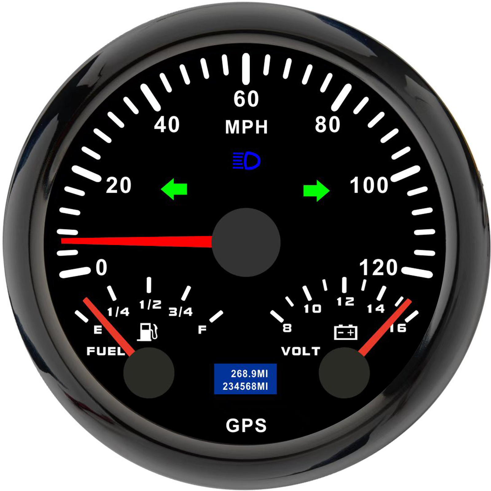 85mm GPS Speedometer 0-120MPH Fuel Gauge/Volt/Tacho/Oil/WaterTemp with Senders 2 Gauge Set With Senders 85mm GPS Speedometer 0-120MPH Fuel Gauge Volt Tachometer 0-8000RPM Water Temp ℉ Oil Press PSI NOTES: The water temperature gauge, Oil pressure gauge does not support desktop testing. It is necessary to connect the SENDING UNITS in order to use it properly. Any helps, please do not hesitate to contact me. Thank you Features: RPM Tachometer Support : Car /Truck/ Boat /Diesel Generator Engine /Gasoline Engine Waterproof:IP67 Excellent anti-fogging function; 316 Stainless steel bezel with curved glass; Convenient Installation by multi-plug socket connecting way; With curved glass( with anti-fog function). 7 colors baclight for your choose (red (default)→green →blue →white →yellow →cyan →Purple→(automatic)),customers can adjust any color that you like Tachometer fit for Car /Truck/ Boat /Diesel Generator Engine /Gasoline Engine GPS Speedometer Specification: Size: 85mm GPS Speedometer: 0-120MPH Fuel level: 0-190ohms, 240-33ohms, 10-180ohms, 0-90ohms(Can be adjusted) Voltage: 8-16V Working voltage: 9-32VDC Working current: <100mA Working temperature: -30-80℃ Storage temperature: -40-85℃ Backlight :7 Color backlight Color: Black Tachometer Specification: Size: 85mm Tachometer: 0-8000RPM Oil pressure: 0-150PSI Water temperature: 100-250℉ Engine hours: 0.0-99999.9H Working voltage: 9-32VDC Working current: <100mA Working temperature: -30-80℃ Storage temperature: -40-85℃ Backlight :7 Color backlight Color: Black Input parameter Oil pressure sensor: 10~184ohms Temperature sensor: 301~22ohms Tachometer Connection 1 Black: Ground(-) 2 Red: 9-32vDC(+) 3 Blue:PRM signal 4 Yellow: Backlight 5 White: Oil pressure signal 6 Brown:Temperature signal 7 Green:Adjust GPS Speedometer Connection 1 Black : Ground(-) 2 Red : 9~32vDc(+) 3 Blue : Fuel signal 4 Yellow : BackLight 5 White : High Beam 6 Brown: Buzzer alarm(+) 7 Green: Nc 8 Yellow: Left Turn 9 Gray: Right Turn 10 white: External Button Package Included: 1 x 85mm 3 in 1 GPS Speedometer 1 x 85mm 3 in 1 Tachometer Gauge 1 x Fuel level sending units 1 x 1/8NPT Temp sensor 1 x 1/8NPT Pressure sensor 2 x Cable 2 x Installation Instruction