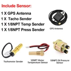 85mm GPS Speedometer 0-200MPH W/tachometer & 85mm 4 in 1 Gauge SET with Senders 2 Gauge Set With Senders 85mm GPS Speedometer 0-120MPH with 85mm Fuel Level Water Temp Oil Pressure Volt Features: Suitable for all vehicles and off-road vehicles The signal comes directly from the satellite signal receiver(GPS Antenna), don't need other speed sensor. The gauge has the advantages of high precision, quick location confirmation and short start up time. IP67 waterproof and dustproof grade Reverse polarity protection and anti-fogging performance Stepper motors used for full range of stepping gauges, great feature with its less power consumption, longer life, higher precision, etc. Most importantly, the gauge is easy to setup, and can be used in all vehicles, boats and off-road vehicles. GPS Speedometer Specifications: Application: Universal fit for Motorcycle/ Boat/Truck/Bus/Car Electronic Speedometer (stepper motor) No Mechanic Sensor, get speed signal from GPS Speed ≠0 and show accurate speed in tunnel with the help of accelerometer Total Mileage Adjustable GPS Blind Area Odometer Compensation OverSpeed Buzzer Alarm (Value Adjustable) Indication Light (Left, Right and High Beam Installation Diameter: 85mm (3 3/8") Speed Range: 0~120MPH RPM Range : 0~8000RPM Mileage Range: 0-99999.9miles Working Voltage: 12V/24V Working temperatures: - 40 to 85°C Protection rank: IP67 Waterproof Reverse polarity protection and anti-fogging performance 4 IN 1 Gauge Technical Data: Fixing dimension: 85mm Indicating Range: Oil press. meter: 0-150PSI Water temp. meter: 100-250℉ Fuel level meter: 0-190ohms/240-33ohms, empty-full; The signal can be adjusted Voltmeter: 8-16V Working Voltage: 12V Input Signal: 10-184ohms for 0-150PSIoil pressure meter; 0-190ohms for fuel level meter;(Default 0-190ohms, can adjust to 240-33ohms) 8-16V voltage meter; Input Signal 320-22ohms for water temperature meter Red backlight Protection grade is IP67, the whole body is completely waterproof; Excellent antifogging function; 316 Stainless steel bezel with curved glass; Convenient Installation by multi-plug socket connecting way; Accessories: matched with connectors, Installation Instruction Package Included: 1 x 85mm 4 in 1 Multifunctional Gauge 1 x 85mm GPS Speedometer Gauge 1 x M16*1.5 Tacho Sensor 1 x 1/8NPT Oil pressure Sensor 1 x 1/8NPT Water Temp Sensor 1 x GPS Antenna 2 x Cable 2 x Installation Instruction