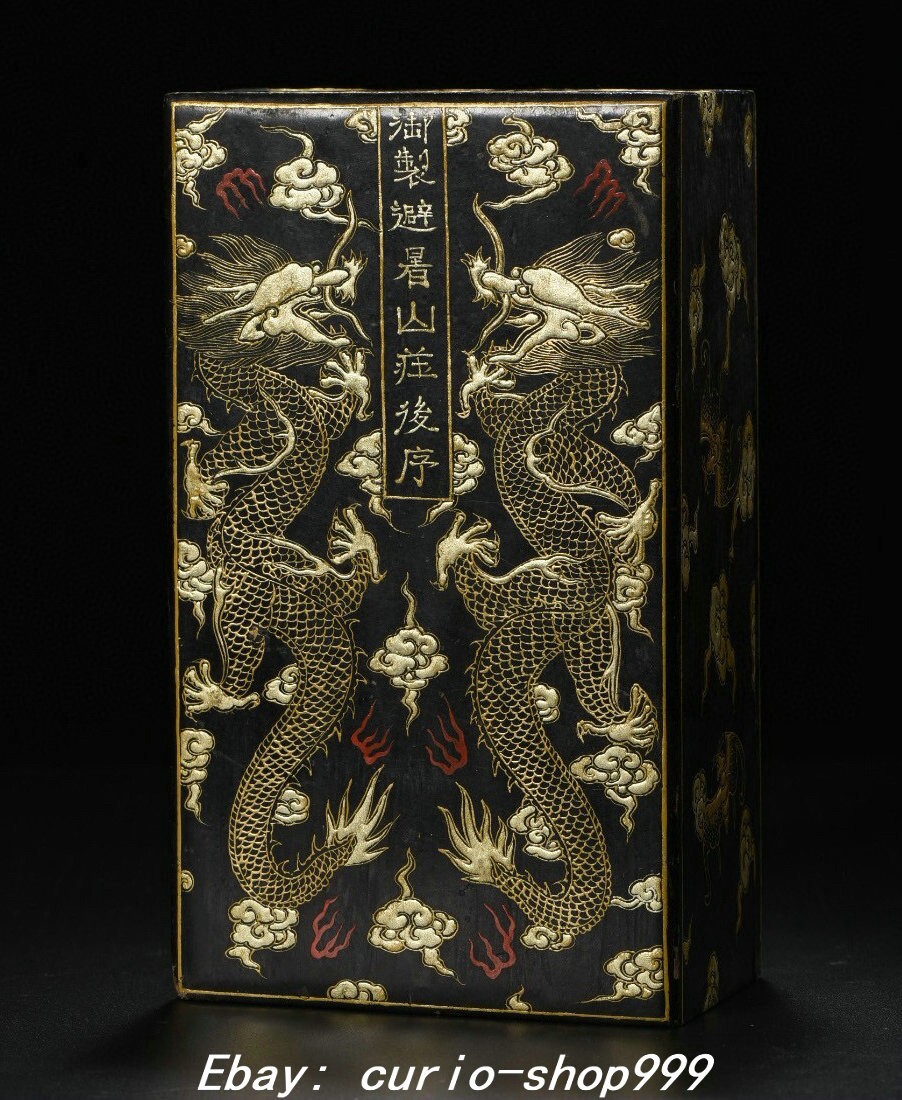 **** Welcome to our antique & Collectable Shop : curio-shop999 **** Description: Here is an 8.6" Qianlong Dynasty Wood Lacquerware Gold Dragon Loong Beast Wenfang Box Case . It is in good condition, and was created by skilled craftsmen in traditional style with fine handcrafts.This is a great piece of valuable collection, a valuable personal alter or a very good present. the handwork is very fine with incredible detailling. Don't miss out this chance to get it.Wish you good luck! . Material : Wood Lacquerware Gold Plating : Chinese Style : Same as photos showing Size : High 2.7 Long 8.6 Breadth 5.1 (inch) Condition Perfect Condition. Perfect, with no scratches, flaws or repairs. Weight: 1.0 KG----included the weight of packing materials Shipping cost to all over the world countries in Free Honored Customers: We are selling the collectibles products and crafts in Beijing ,China since 1993 and collected them all over the world all the time . In our shop the bronze sculpture, animal, vase, urn, flowerpot,Incense Burner.Table chair sets. Militaria goods. buddha statues, Bodhisattva Statues, Buddhist Ritual Items etc is our speciality .Many of the items we sell come from our own personal collection and have been in our family for a very long time .My great-grandfather was the first in this family to start collecting art & antiques when he still lived in San Xi and Tibet around 1922 ,some of the paintings he once collected can now be seen in museums around the globe.We won't make money from the shipping cost, if you dislike the item when you receive it,we can refund all of your money to you within thirty days. Please confidence for bidding . We recommend the combine shipping and offer you an big price discount if you order more items together ! 2025.5.14 四 号