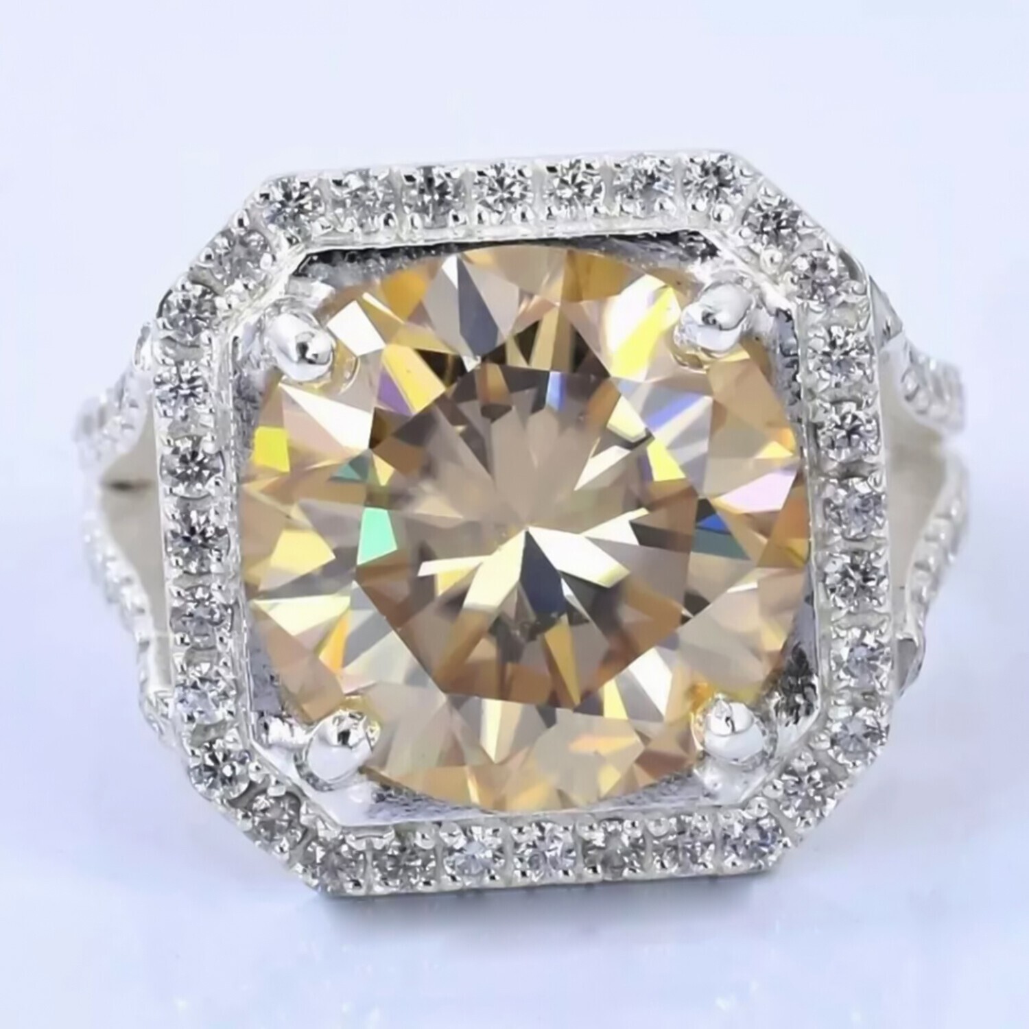 $ 150.98RARE 11 Ct Champagne Treated Diamond Ring in Certified 925 Sterling Silver