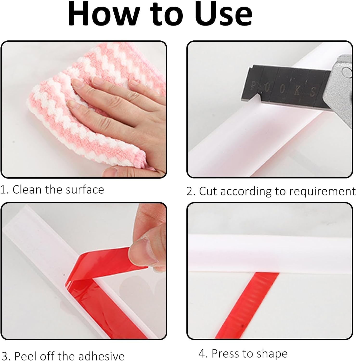 87 Inch Shower Threshold Water Dam, Self Adhesive Silicone Shower Dam Water Stopper Barrier Kitchen Water Strip Dam Shower Guard for Wet and Dry Separation for Showers, Bathtubs, Sinks and Countertops Product Details Easy to Install:Attention before installation,You must clean and dry the surface before installation,This is very important.Clean and dry the surface before installation, you can heat the mounting surface and adhesive with a hair dryer for better adhesion, tear off the sticker and press to the surface within minutes,press shower threshold water dam repeatedly with hands or tools,to strengthen the fixing.Of course,for added fixation and waterproofing, you can seal the bottom edge after gluing with clear silicone caulk.At the corners we recommend cutting to 45 degrees, splicing 90 degrees to paste Made of silicone:The shower threshold water dam is made silicone, which is corrosion resistant, high temperature resistant, wear resistant and does not have a peculiar smell. It's flexible and can be cut at will, and the smooth surface makes it very easy to clean Product Size: 87 inches (L) x 0.79 inches (W) x 0.47 inches (H), 90 degree design, the silicone water barrier strip is soft to easily cut to the length you need Wide Application:The silicone Shower Threshold Water Barrier has a good waterproof effect. It can be used on shower floors,shower trays,kitchen sinks,under bathroom doors,bathtub edgings,around washing machines or toilets to form a water barrier, effectively stopping the flow of water and achieving wet and dry separation. Solve Your Kitchen Counter Water Problems:This long, flexible water guard is designed to be placed along the edge of a smooth countertop or around the kitchen sink, to act as a barrier and dam for water, preventing it from splashing and keeping you dry while washing dishes. It also prevents water from dripping, overflowing onto the floor, or soaking into cabinets. The water blocking strip has a clean appearance and is a versatile water dam barrier for your modern kitchen.