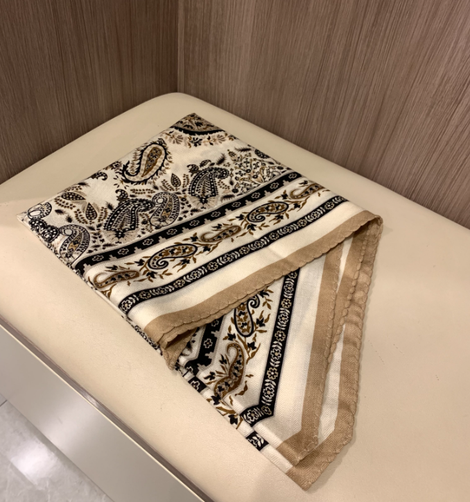 $ 31.6889% Wool 11% Silk Neckerchief Scarf Shape cashew Print 65X65cm Bandana Wrap