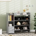 Store Hot Sale • Toy Organization: Featuring eight bins, two cubbies, and a top shelf, this kids' toy storage organizer offers extensive space for toys, books, clothing, and arts and crafts materials. • Child-Friendly: Designed for children aged 3-8, this toy storage unit encourages early organizational skills, making tidying up a fun and easy task for kids. • Tough and Ready: Crafted from MDF and steel, this toy organizer provides a dependable and solid storage solution that withstands the energetic play of children. • Clutter-Free: Great for any setting, this toy storage organizer effortlessly fits into living rooms, nurseries, or playrooms, keeping areas neat while keeping toys within easy reach. • Playroom Storage Info: Overall Dimensions: 44.3"L x 11.8" W x 39.4" H. Max Weight: 2.2 lbs. (each bin), 51 lbs. (total). Assembly required. ● Color: Gray ● Material: MDF, Steel, Plastic ● Overall Dimensions: 44.3" L x 11.8" W x 39.4" H ● Top Storage Shelf: 11.2" W x 10.9" D x 3.1" H (Left), 31.3" W x 10.9" D x 3.9" H (Right) ● Storage Bin: 15.4" W x 11.6" D x 4.9" H (Large), 7.5" W x 11.6" D x 4.9" H (Small) ● Storage Cubby: 11.2" W x 11" D x 11" /9.8" H (Upper/Lower) ● Cabinet: 11.2" W x 11" D x 12" H ● Maximum Load: 2.2 lbs. (each bins), 51 lbs. (total) ● Approved Age: 3+ years ● Recommended Age: 3-8 years ● Item Label: 311-091V80GY ● 1 x Storage Unit ● 8 x Storage Bins ● 1 x Manual ● Eight storage bins and two cubbies for ample organization ● Top space and cabinet enhance storage versatility ● Child-friendly height encourages tidiness and independence ● Constructed from MDF and steel for durability ● Appropriate for living rooms, nurseries, or playrooms ● Assembly required