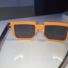 These exclusive Loot Crate 8-Bit Pixel Orange Sunglasses feature a rectangular style with black tinted lenses. Designed for both men and women, these sunglasses provide UV400 protection. The frame is made of plastic in an orange color, perfect for fans of the Minecraft theme. Perfect for adding a fun and stylish touch to your outfit.