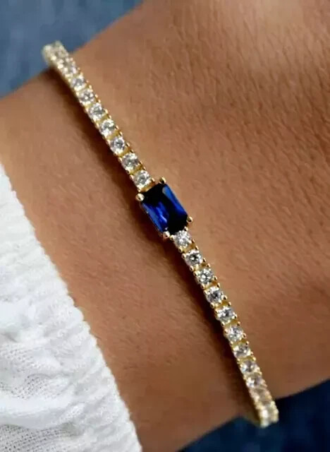 $ 66.014K White Gold Plated 15Ct Lab Sapphire Tennis Bracelet 7 Inch