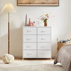 Product Description This dresser is designed to be both sturdy and versatile. It features a water-resistant MDF board and a durable steel frame, which combine to create a cross stable structure that can support up to 66lb without tipping over. To ensure safety, anti-tipping accessories are included. The dresser also has 4 adjustable feet, making it adaptable to different spaces and ensuring stability. With 8 drawers, there is plenty of space to store all your belongings, and the wooden top provides a convenient surface for frequently used items. The dresser is made of cationic materials and high-quality breathable and non-woven synthetic fiber, making it suitable for people of all ages. It can be used in a variety of settings, such as a closet, nursery, or entryway, and is perfect for storing workout gear, blankets, baby clothes, and other frequently used items. The easy-pull drawers slide smoothly and can be easily cleaned with a damp cloth. Product Dimensions 31.49"D x 11.8"W x 36.41"H Color Rustic Brown, Black, Gray, White Mounting Type Freestanding Room Type Entryway Special Feature Lined Assembly Required Yes Model Name Drawers Dresser Item Weight 25 Pounds Package include: 1 set of 8 Drawers Dresser