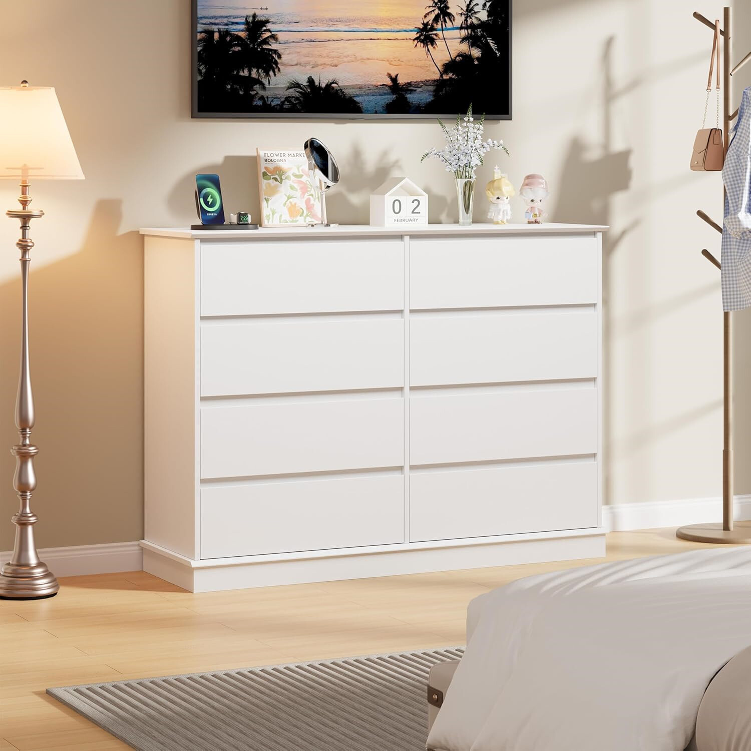 8-Drawer Wooden Dresser with Wide Top for Bedroom Storage