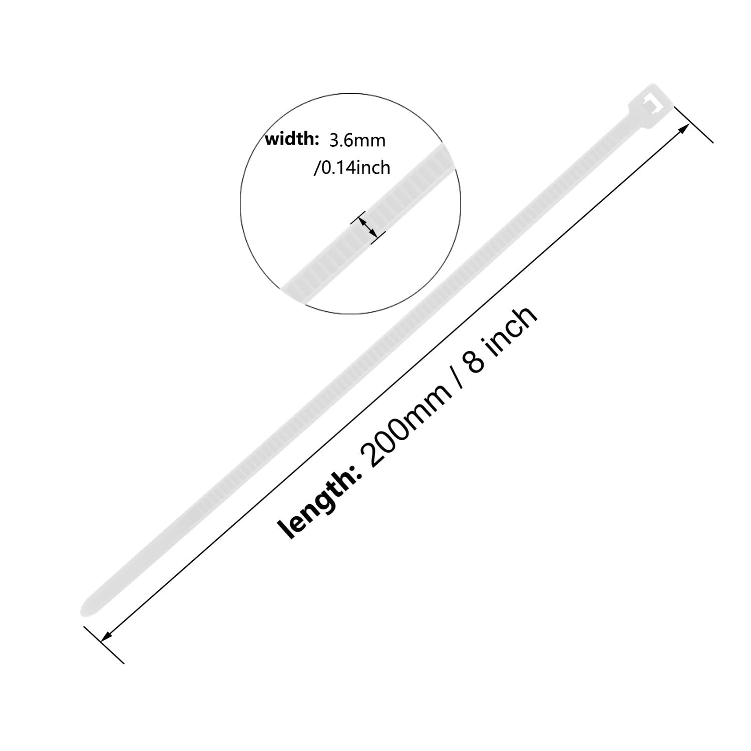 【Zip Tie Details】 Specifications Length: 8in | Width: 0.14in | Maximum Diameter: 2in | Tensile Strength: 40 Lbs | Color: Black | Quantity: 1,000 Packs, So You Don'T Have To Worry About Running Out Mid-Project 【Nylon-PA66】 Zip Ties Are Made Of PA66 Nylon Withstands temperature extremes from -40°F to 185°F, including ice, rain, snow, heat and direct sunlight low temperature corrosion 【Indoor And Outdoor Use】 Used for a variety of purposes such as electronics, electrical appliances, communications, machinery, automotive, aerospace and other areas of the fixed material, but also can be used to fix the Christmas tree, furniture, toys, gift packaging, tents, luggage 【International Brand】 Zip Ties Have Been Chosen By Over 10 Million Customers Since 2010, Selling Well In More Than 100 Countries. Experience The Power Of A High-Quality Product 【Long Warranty】 Enjoy Peace Of Mind With Our 1-Year Warranty Period. If You Encounter Any Quality Issues Within This Time, We Offer A 100% Refund