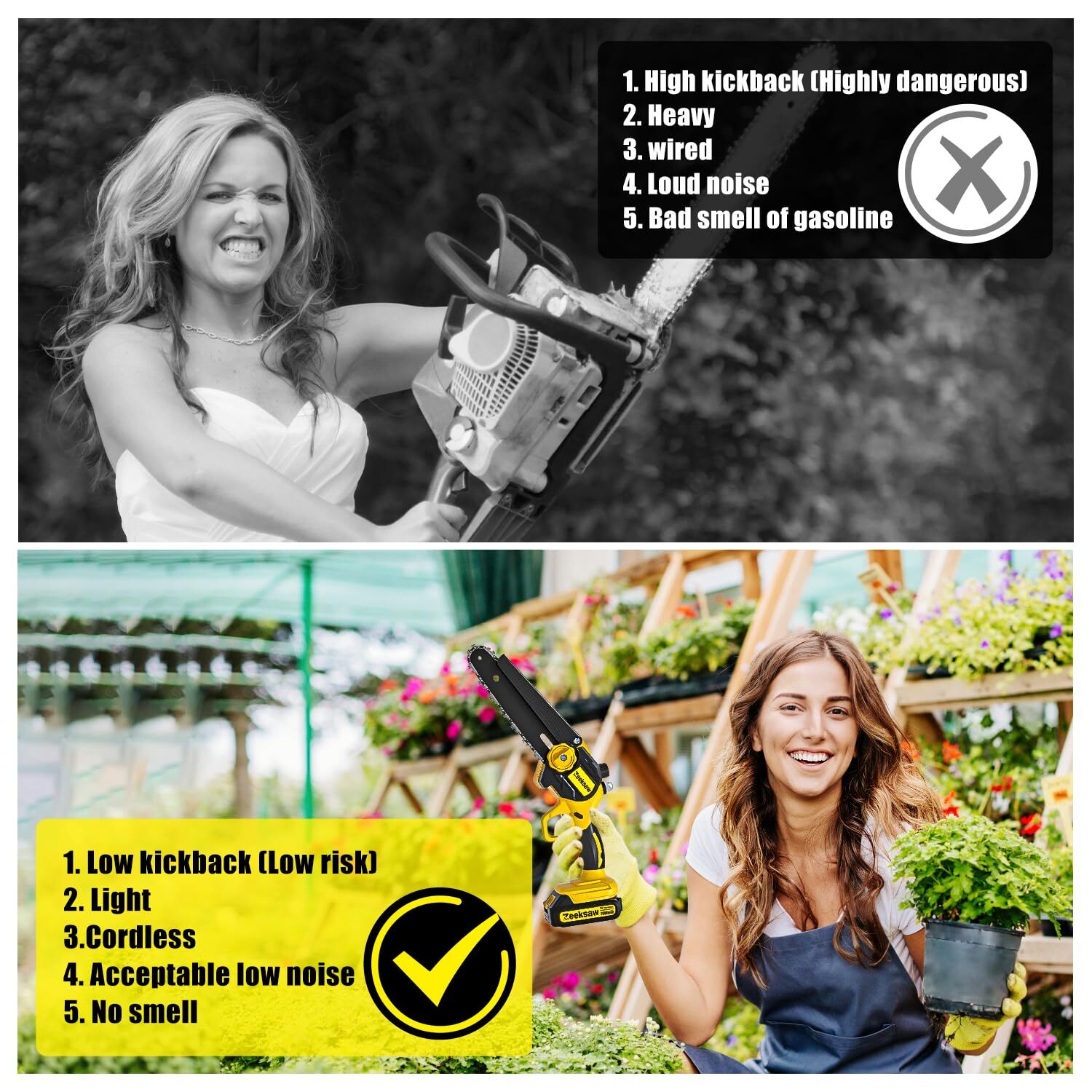Mini Chain saw Cordless 8 inch Auto Oiler, Automatic Chain Tension, 21V MAX* Rechargeable Cordless Chainsaw with 2x2.0Ah Battery and Charger, Mini Chainsaw 8 inch Cordless Hand-Held Electric Chain Saw Brand Zeeksaw Power Source Battery Powered Horsepower 900 Watts Item Weight 2.8 Pounds Product Dimensions 15"L x 7"W x 5"H Chain Length 8 Inches Chain Speed 25.6ft/s Manufacturer Zeeksaw โ ใSelf Oiler System - 2024 ๐๐๐๐๐๐๐ใ Are you fed up with oiling the chain of your small hand chainsaw with the * extra * oil can? Our mini electric chainsaw has added a chain lubrication system to oiler the chain quickly and easily, so you don't need to carry extra oil pots, Simply pour oil into the tank and the chain will be lubricated freely for less wear and smoother cutting โ ใ TOOL-FREE CHAIN TENSIONING - 2024 ๐๐๐๐๐๐๐ใDon't need any fancy tools or expertise to replace the chain, the unique design made it easy and convenient. No tools are needed to adjust chain tension, very user-friendly and woman-friendly design. Even women and elderly people can easily control and use it and hold it for long periods of time without tiring their hands. โ SuperStar Garden Machine - The 25 ft/s super high chain speed can cut through a 6" thick branch in only 5 seconds. Support all your cutting needs. Even the tiniest girl can hold it in one hand to take a tree down like butter! โ Versatile Tool - Zeeksaw Mini portable chainsaw is perfect for deforestation, pruning, gardening, carpentry DIY, and more. It's a must-have for farm, garden, and home use. Hand Saw for Tree Cutting โ The Perfect Gift - Zeeksaw Woodwise Mini Chainsaw Cordless is the perfect Christmas gift for Father, Mother, Wife, Husband, Friends, Gardeners, DIY Lovers, and Woodworkers. Cool Dad Gifts, Fathers Day Gifts ๐ with 100% Satisfaction Guarantee - you can buy with confidence knowing that if you don't love it, we'll buy it back from you, no questions asked! This is our new upgraded 2024 version mini chainsaw, which is more powerful than the old one. It is a new type of portable electric chainsaw, which is light and easy to use. It is powered by a high-speed motor, and the chain speed is up to 5m/s, making it easy to cut wood, bamboo, tree branches, etc. This mini chainsaw is very suitable for cutting wood, tree branches, and other materials in the garden, farm, and daily life. It is also a good tool for outdoor camping, hiking, and barbecue. It is a necessary tool for home travel. Shipping We offer FREE shipping on all orders! We ship within Three business days of payment, usually sooner. We use a selection of shipping services such as UPS, FedEx, USPS etc. We only ship to the lower 48 states, no APO/FPO addresses or PO Boxes allowed. Local pickups and combined shipping options are not provided at this time. Return You can return a product for up to 30 days from the date you purchased it. Any product you return must be in the same condition you received it and in the original packaging. Please keep the receipt. Payment We accept payment by any of the following methods: PayPal Please pay as soon as possible after winning an auction, as that will allow us to post your item to you sooner! Feedback Customer satisfaction is very important to us. If you have any problem with your order, please contact us and we will do our best to make you satisfied. Contact Us If you have any queries, please contact us via ebay. We usually respond within 24 hours on weekdays. Please visit our eBay store to check out other items for sale! Thank you for shopping at our store.